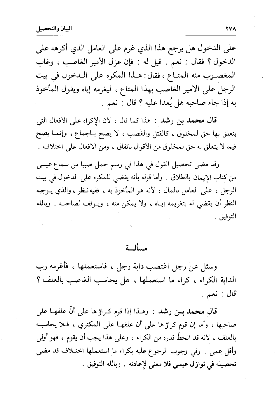 وقد مضى تحصيل القول في هذا في رسم حمل صبيا من سماع عيسى من كتاب الأيمان بالطلاق. وأما قوله بأنه يقضي للمكره على الدخول في بيت الرجل، على العامل بالمال؛ لأنه هو المأخوذ به، ففيه نظر، والذي يوجبه النظر أن يقضي له بتغريمه إياه، ولا يمكن منه، ويوقف لصاحبه. وبالله التوفيق.