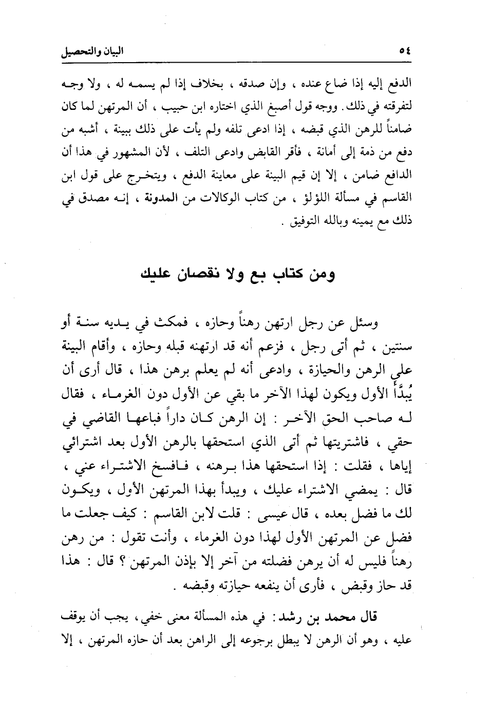 قال محمد بن رشد: في هذه المسألة معنى خفي، يجب أن يوقف عليه، وهو أن الرهن لا يبطل برجوعه إلى الراهن بعد أن حازه المرتهن، إلا