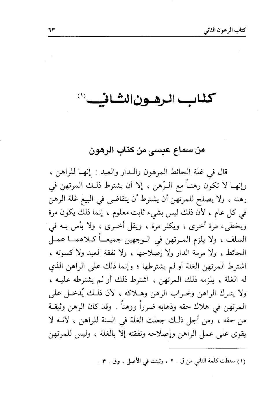[كتاب الرهون الثاني] [غلة الحائط المرهون والدار والعبد]