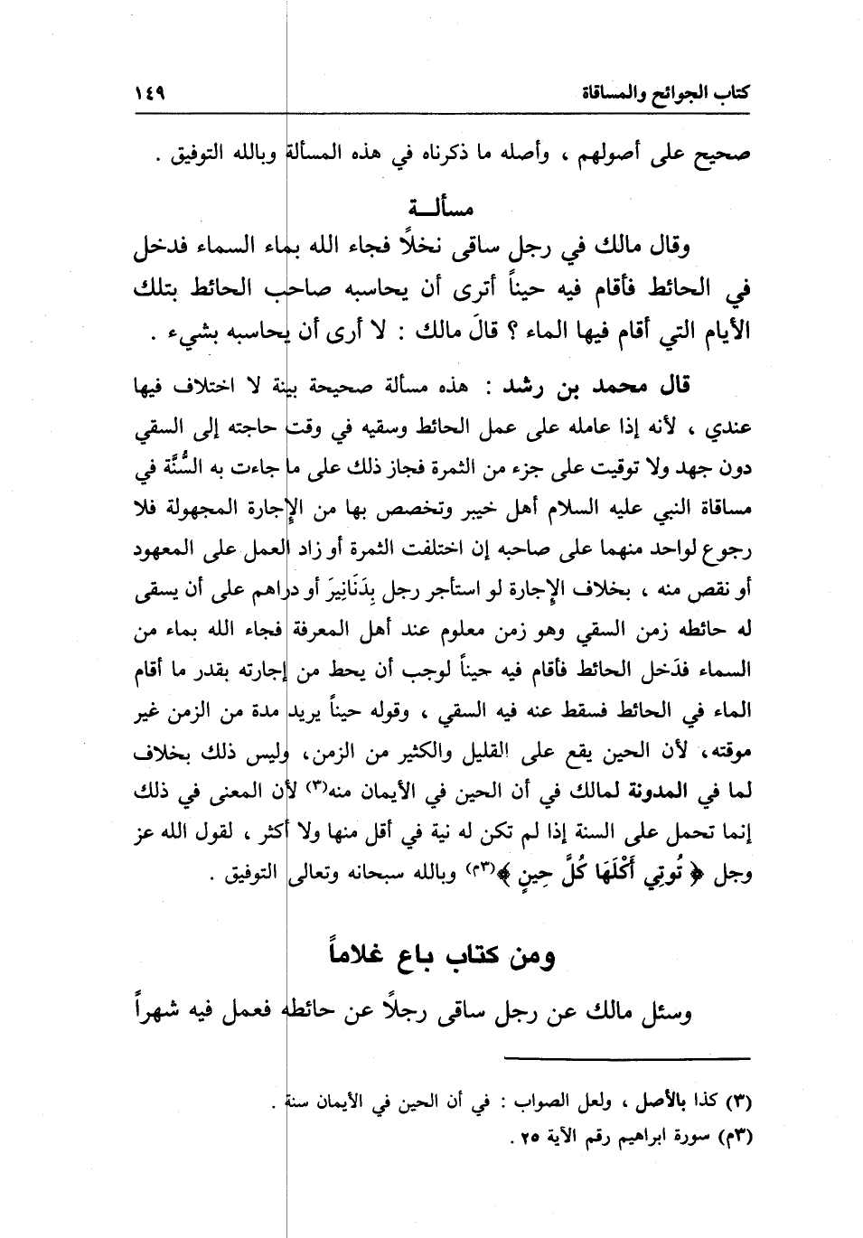 ومن كتاب باع غلاما وسئل مالك عن رجل ساقى رجلا عن حائطه فعمل فيه شهرا