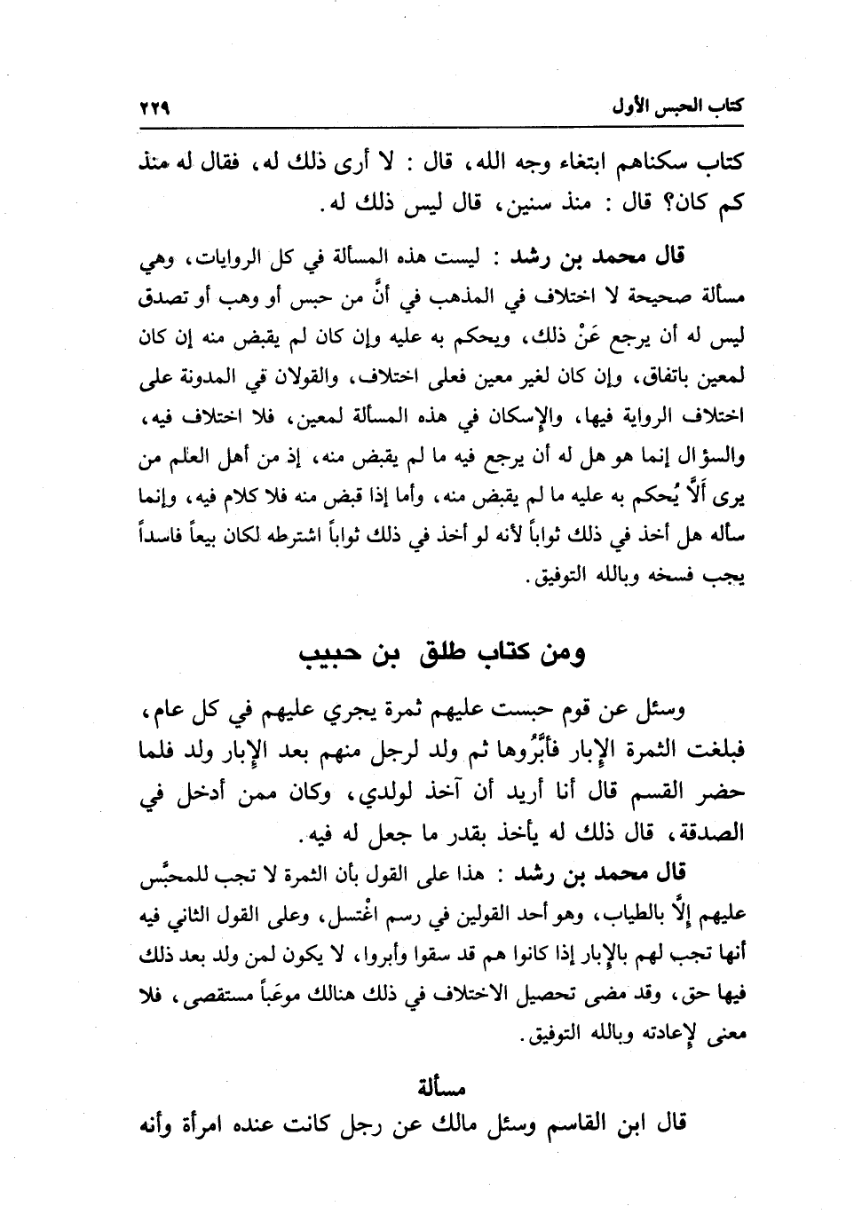 مسألة قال ابن القاسم وسئل مالك عن رجل كانت عنده امرأة وأنه
