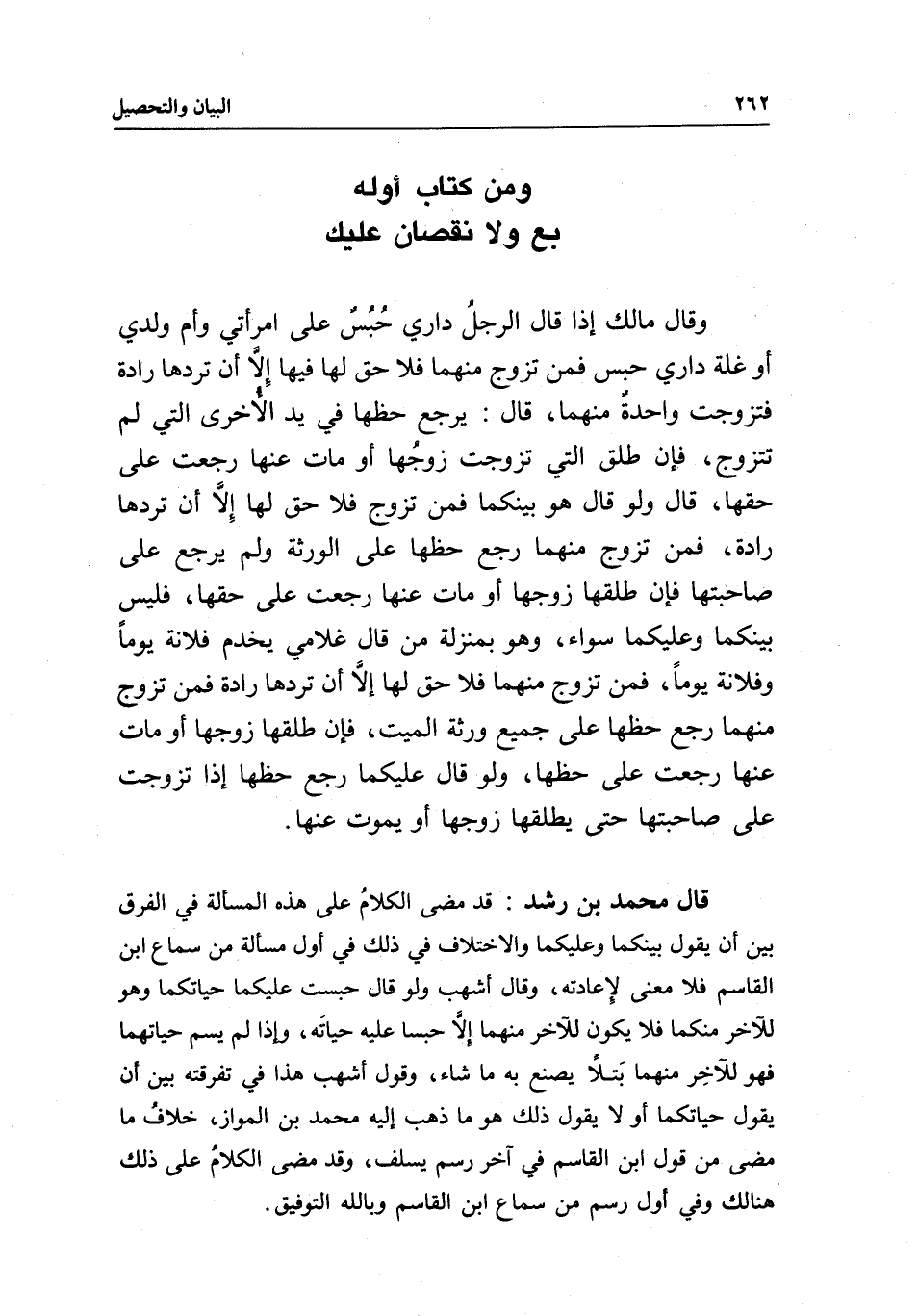 قال محمد بن رشد: قد مضى الكلام على هذه المسألة في الفرق بين أن يقول بينكما وعليكما والاختلاف في ذلك في أول مسألة من سماع ابن القاسم فلا معنى لإعادته، وقال أشهب: ولو قال حبست عليكما حياتكما وهو للآخر منكما فلا يكون للآخر منهما إلا حبسا عليه حياته، وإذا لم يسم حياتهما فهو للآخر منهما بتلا يصنع به ما شاء. وقول أشهب هذا في تفرقته بين أن يقول حياتكما أو لا يقول ذلك - هو ما ذهب إليه محمد بن المواز، خلاف ما مضى من قول ابن القاسم في آخر رسم يسلف، وقد مضى الكلام على ذلك هنالك وفي أول رسم من سماع ابن القاسم، وبالله التوفيق.