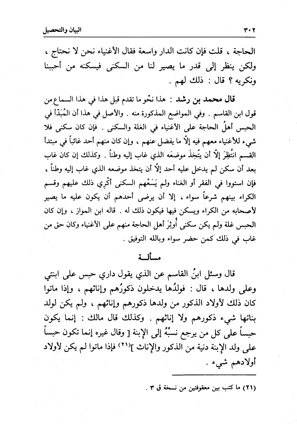 قاله ابن المواز، وإن كان الحبس غلة ولم يكن سكنى أوثر أهل الحاجة منهم على الأغنياء وكان حق من غاب في ذلك كمن حضر سواء، وبالله التوفيق.