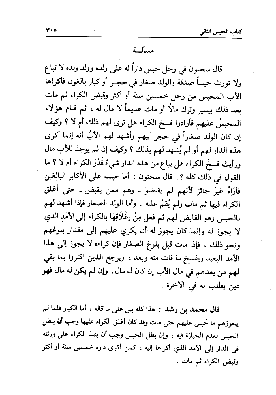 قال محمد بن رشد: هذا كله بين على ما قاله، أما الكبار فلما لم يحوزهم ما حبس عليهم حتى مات وقد كان أغلق الكراء عليها وجب أن يبطل الحبس لعدم الحيازة فيه، وإن بطل الحبس وجب أن ينفذ الكراء على ورثته في الدار إلى الأمد الذي أكراها إليه، كمن أكرى داره خمسين سنة أو أكثر وقبض الكراء ثم مات.