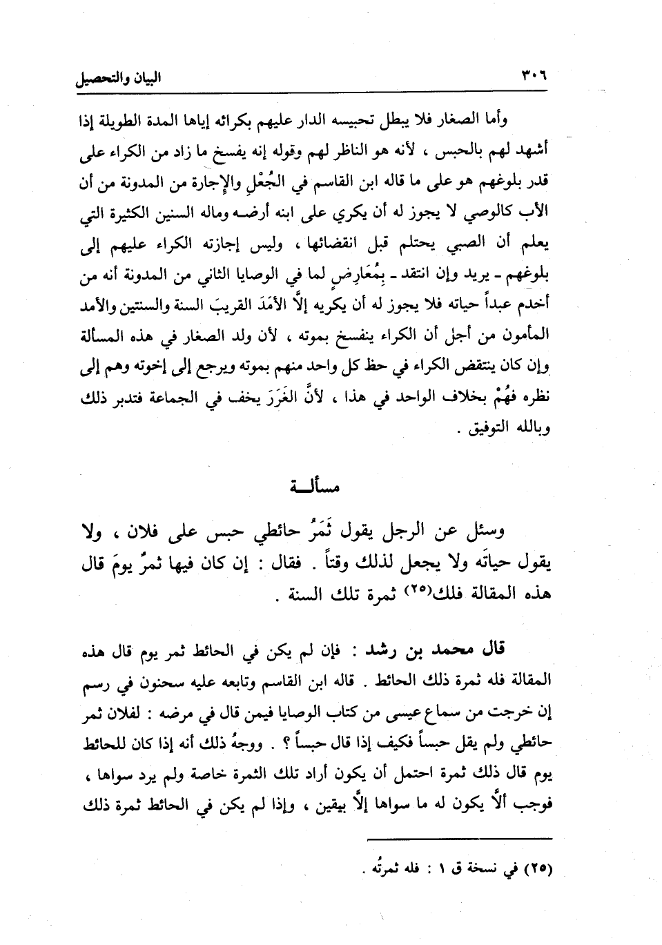 وأما الصغار فلا يبطل تحبيسه الدار عليهم بكرائه إياها المدة الطويلة إذا أشهد لهم بالحبس؛ لأنه هو الناظر لهم. وقوله: إنه يفسخ ما زاد من الكراء على قدر بلوغهم - هو على ما قاله ابن القاسم في الجعل والإجارة من المدونة من أن الأب كالوصي لا يجوز له أن يكري على ابنه أرضه وماله السنين الكثيرة التي يعلم أن الصبي يحتلم قبل انقضائها، وليس إجازته الكراء عليهم إلى بلوغهم- يريد وإن انتقد- بمعارض لما في الوصايا الثاني من المدونة أنه من أخدم عبدا حياته فلا يجوز له أن يكريه إلا الأمد القريب السنة والسنتين والأمد المأمون من أجل أن الكراء ينفسخ بموته؛ لأن ولد الصغار في هذه المسألة وإن كان ينتقض الكراء في حظ كل واحد منهم بموته ويرجع إلى إخوته وهم إلى نظره فهم بخلاف الواحد في هذا؛ لأن الغرر يخف في الجماعة فتدبر ذلك، وبالله التوفيق.