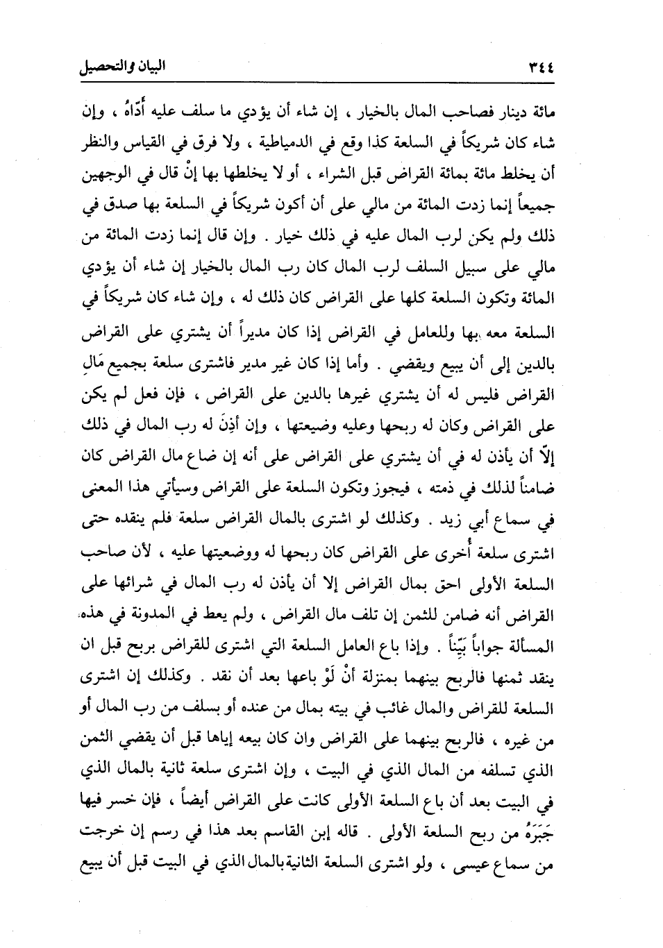 وأما إذا كان غير مدير فاشترى سلعة بجميع مال القراض فليس له أن يشتري غيرها بالدين على القراض، فإن فعل لم يكن على القراض وكان له ربحها وعليه وضيعتها، وإن أذن له رب المال في ذلك إلا أن يأذن له في أن يشتري على القراض على أنه إن ضاع مال القراض كان ضامنا لذلك في ذمته، فيجوز وتكون السلعة على القراض وسيأتي هذا المعنى في سماع أبي زيد.