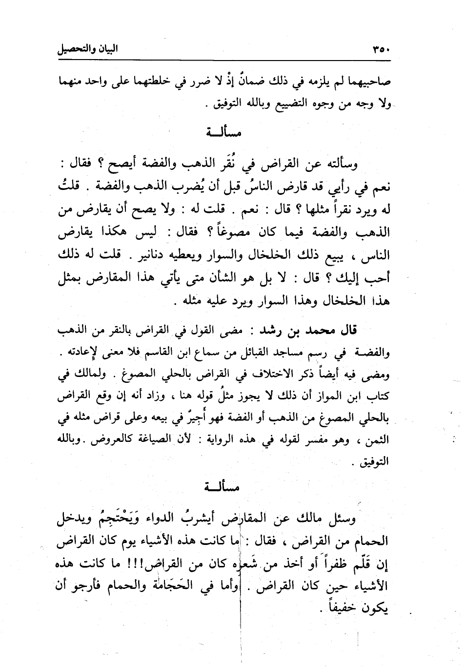 قلت له: ذلك أحب إليك؟ قال: لا بل هو الشأن متى يأتي هذا المقارض بمثل هذا الخلخال وهذا السوار ويرد عليه مثله.