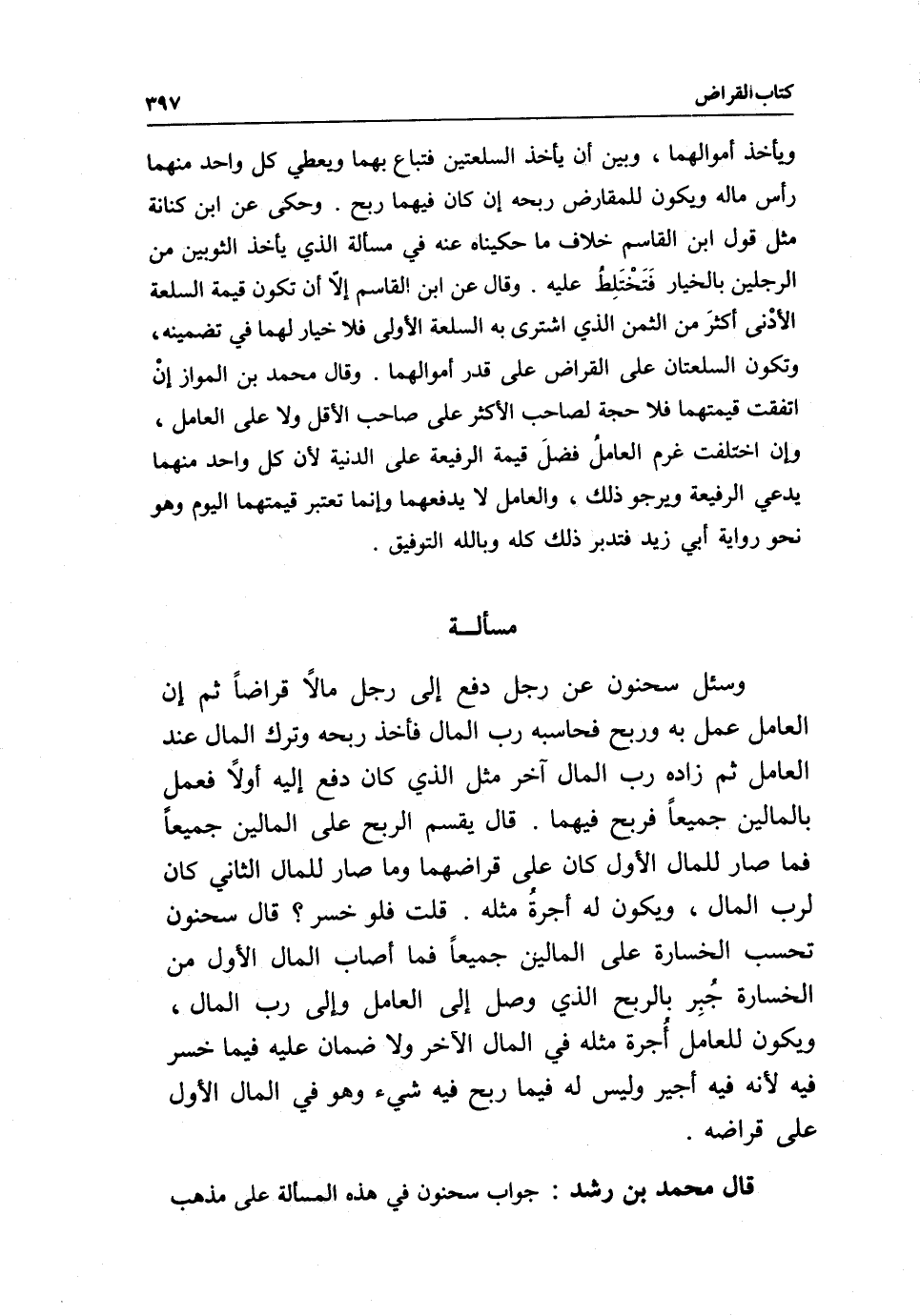 قال محمد بن رشد: جواب سحنون في هذه المسألة على مذهب