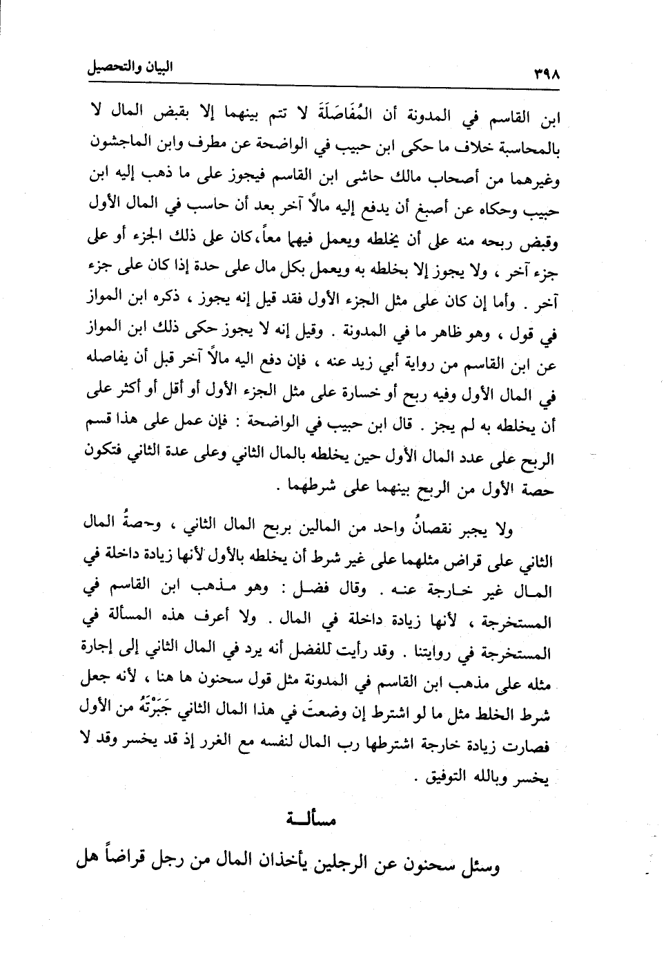 مسألة وسئل سحنون: عن الرجلين يأخذان المال من رجل قراضا هل