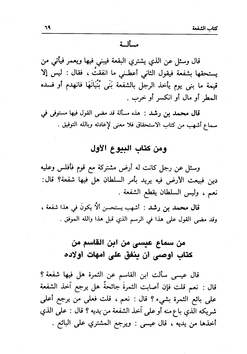 من سماع عيسى من ابن القاسم من