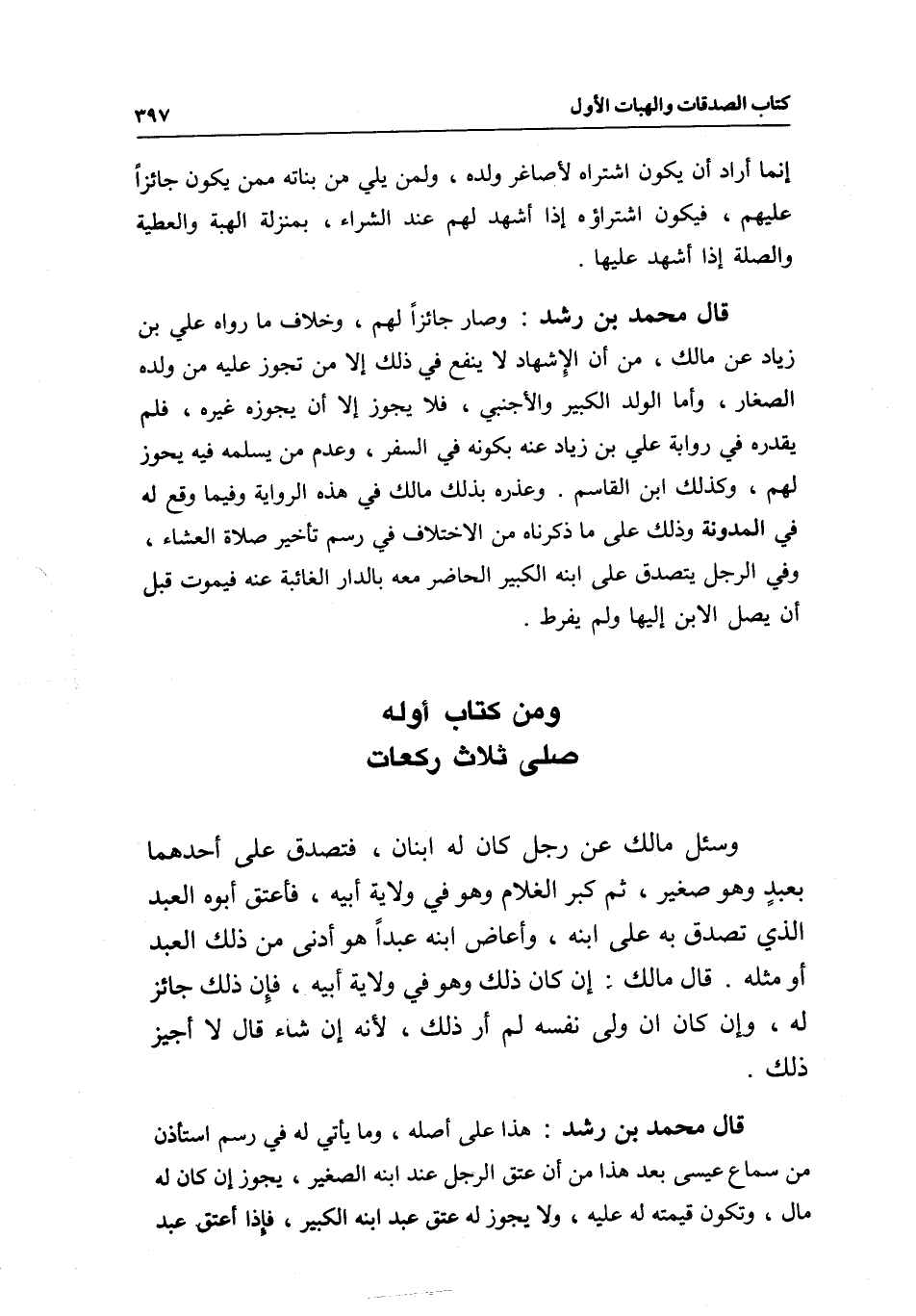 قال محمد بن رشد: وصار جائزا لهم، وخلاف ما رواه علي بن زياد عن مالك، من أن الإشهاد لا ينفع في ذلك إلا من تجوز عليه من ولده الصغار، وأما الولد الكبير والأجنبي، فلا يجوز إلا أن يجوزه غيره، فلم يقدره في رواية علي بن زياد عنه بكونه في السفر، وعدم من يسلمه فيه يحوز لهم، وكذلك ابن القاسم. وعذره بذلك مالك في هذه الرواية وفيما وقع له في المدونة، وذلك على ما ذكرناه من الاختلاف في رسم تأخير صلاة العشاء، وفي الرجل يتصدق على ابنه الكبير الحاضر معه بالدار الغائبة عنه فيموت قبل أن يصل الابن إليها ولم يفرط.