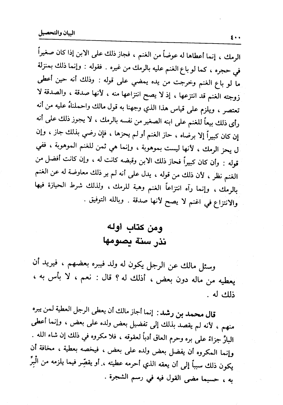 قال محمد بن رشد: إنما أجاز مالك أن يعطى الرجل العطية لمن يبره منهم؛ لأنه لم يقصد بذلك إلى تفضيل بعض ولده على بعض، وإنما أعطى البار جزاء على بره وحرم العاق أدبا لعقوقه، فلا مكروه في ذلك إن شاء الله. وإنما المكروه أن يفضل بعض ولده على بعض، فيخصه بعطية، مخافة أن يكون ذلك سببا إلى أن يعقه الذي أحرمه عطيته، أو يقصر فيما يلزمه من البر به، حسبما مضى القول فيه في رسم الشجرة.