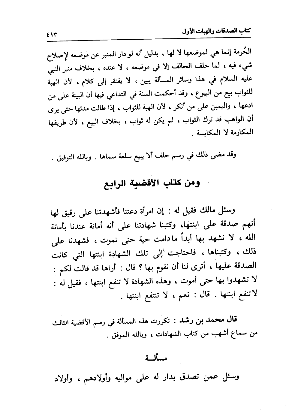 قال محمد بن رشد: تكررت هذه المسألة في رسم الأقضية الثالث من سماع أشهب من كتاب الشهادات، وبالله الموفق.