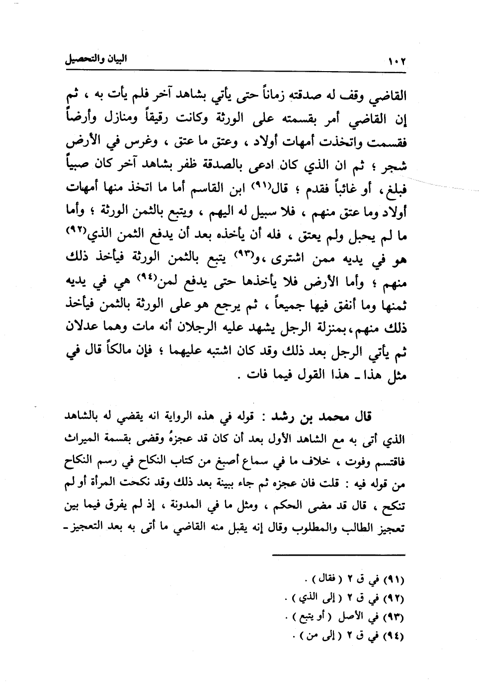 قال محمد بن رشد: قوله في هذه الرواية أنه يقضى له بالشاهد الذي أتى به مع الشاهد الأول بعد أن كان قد عجزة، وقضى بقسمة الميراث فاقتسم وفوت، خلاف ما في سماع أصبغ من كتاب النكاح، في رسم النكاح، من قوله فيه: قلت: فإن عجزه، ثم جاء ببينة بعد ذلك، وقد نكحت المرأة أو لم تنكح، قال: قد مضى الحكم، ومثل ما في المدونة؛ إذ لم يفرق فيما بين تعجيز الطالب والمطلوب، وقال: إنه يقبل منه القاضي ما أتى به بعد التعجيز