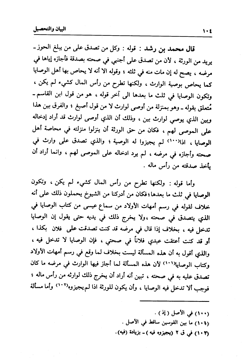 وأما قوله: ولكنها تطرح من رأس المال كشيء لم يكن، وتكون الوصايا في ثلث ما بعدها، فكان من أدركنا من الشيوخ يحملون ذلك على أنه خلاف لقوله في رسم أمهات الأولاد، من سماع عيسى، من كتاب الوصايا، في الذي يتصدق في صحته، ولا يخرج ذلك في يديه حتى يقول: إن الوصايا تدخل فيه، بخلاف إذا قال في مرضه: قد كنت تصدقت على فلان بكذا، أو قد كنت أعتقت عبدي فلانا في صحتي، فإن الوصايا لا تدخل فيه، والذي أقول به أن هذه المسألة ليست بخلاف لما وقع في رسم أمهات الأولاد، وكتاب الوصايا؛ لأن هذه المسألة لما أجاز فيها الوارث في مرضه ما كان تصدق عليه به في صحته، تبين أنه أراد أن يخرج ذلك لوارثه من رأس ماله؛ فوجب ألا تدخل فيه الوصايا، وأن يكون للورثة إذا لم يجيزوه.