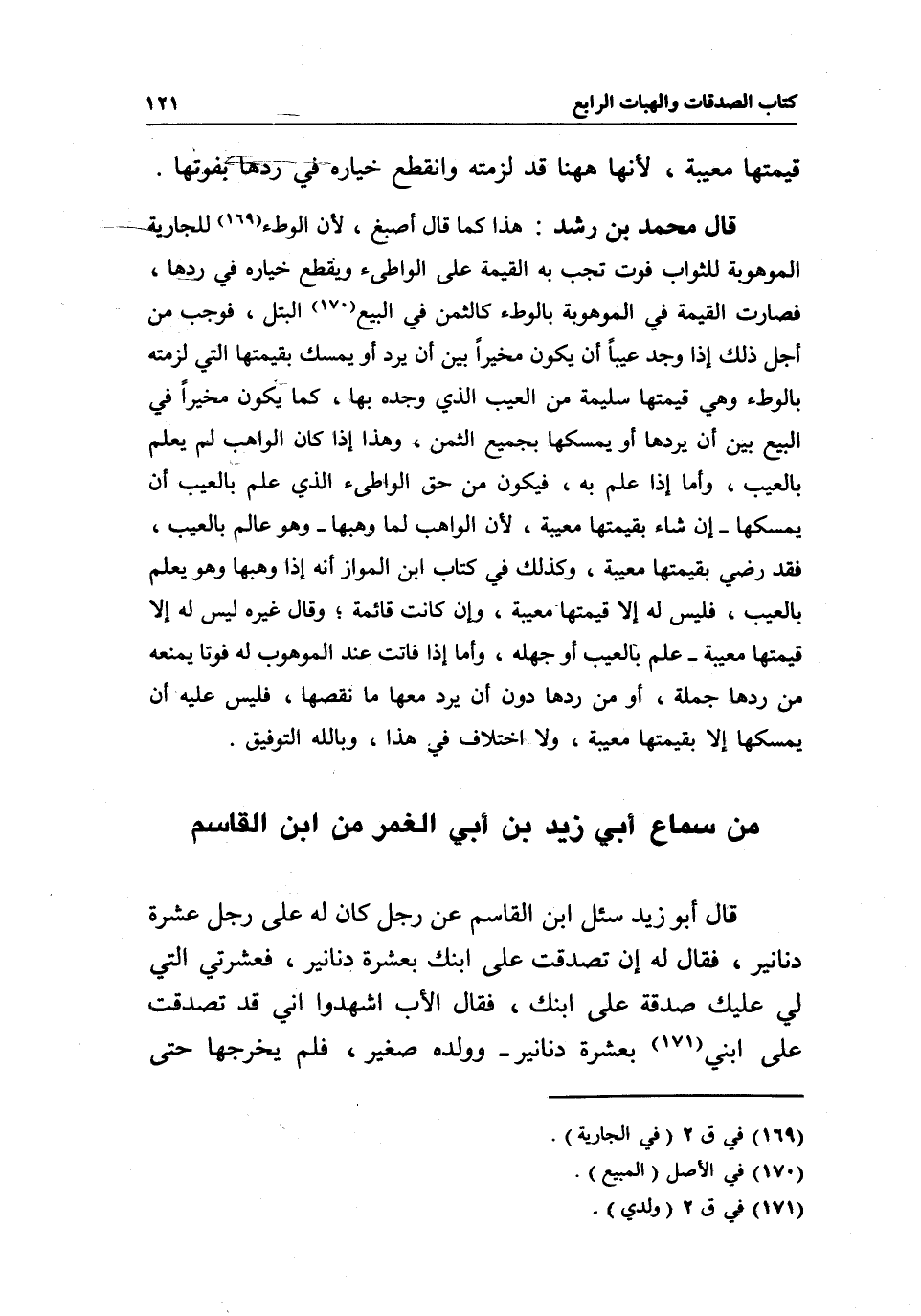من سماع أبي زيد بن أبي الغمر من ابن القاسم