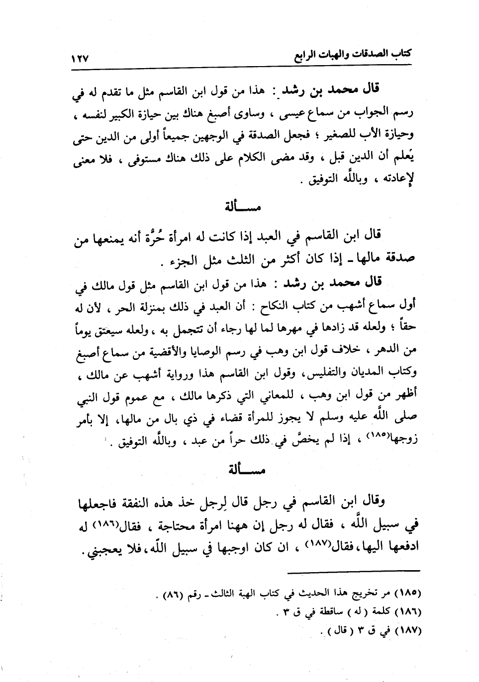 مسألة وقال ابن القاسم في رجل قال لرجل: خذ هذه النفقة فاجعلها في سبيل الله، فقال له رجل: إن هاهنا امرأة محتاجة، فقال له: ادفعها إليها، فقال: إن كان أوجبها في سبيل الله، فلا يعجبني.