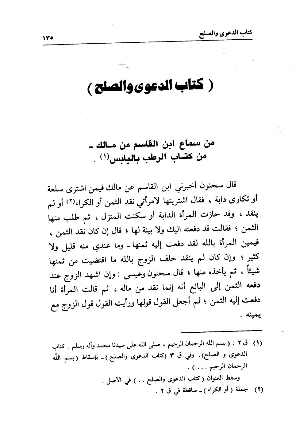 (كتاب الدعوى والصلح) من سماع ابن القاسم من مالك -
