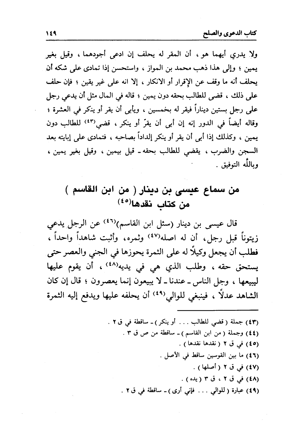 من كتاب نقدها قال عيسى بن دينار (سئل ابن القاسم) عن الرجل يدعي زيتونا قبل رجل، أن له أصله وثمره، وأثبت شاهدا واحدا، فطلب أن يجعل وكيلا له على الثمرة يحوزها في الجني والعصر حتى يستحق حقه، وطلب الذي هي في يديه، أن يقوم عليها ليبيعها، وجل الناس- عندنا- لا يبيعون إنما يعصرون؛ قال إن كان الشاهد عدلا، فينبغي للوالي أن يحلفه عليها ويدفع إليه الثمرة