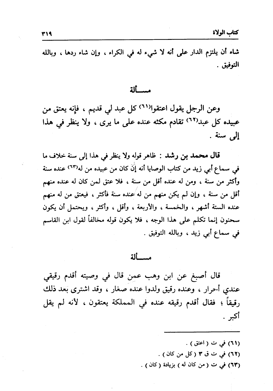 مسألة وعن الرجل يقول: اعتقوا كل عبد لي قديم، فإنه يعتق من عبيده كل عبد تقادم مكثه عنده على ما يرى، ولا ينظر في هذا إلى سنة.