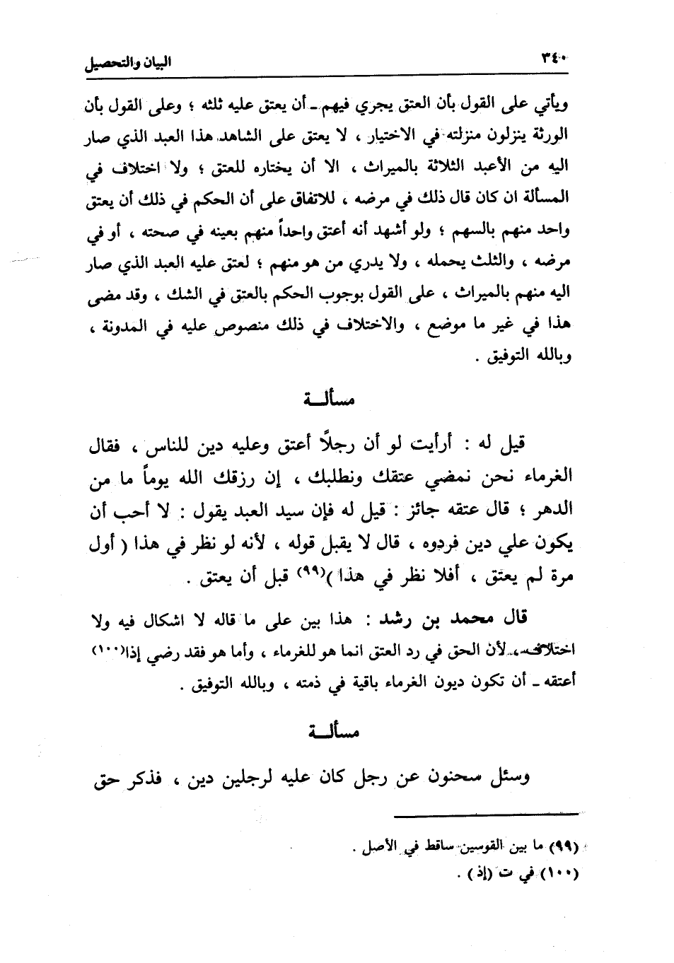 مسألة وسئل سحنون عن رجل كان عليه لرجلين دين، فذكر حق