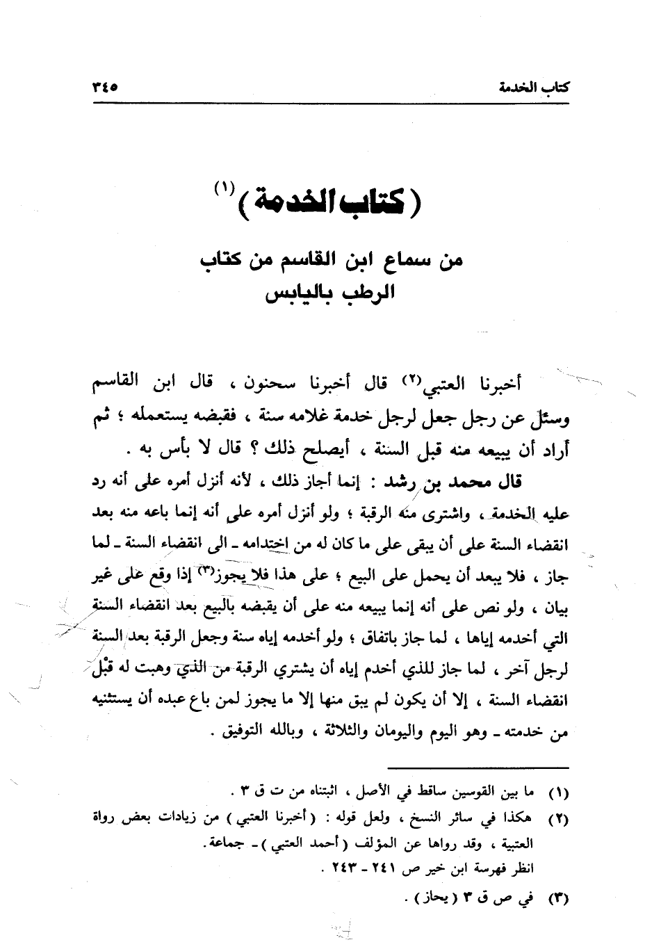 (كتاب الخدمة) من سماع ابن القاسم من كتاب