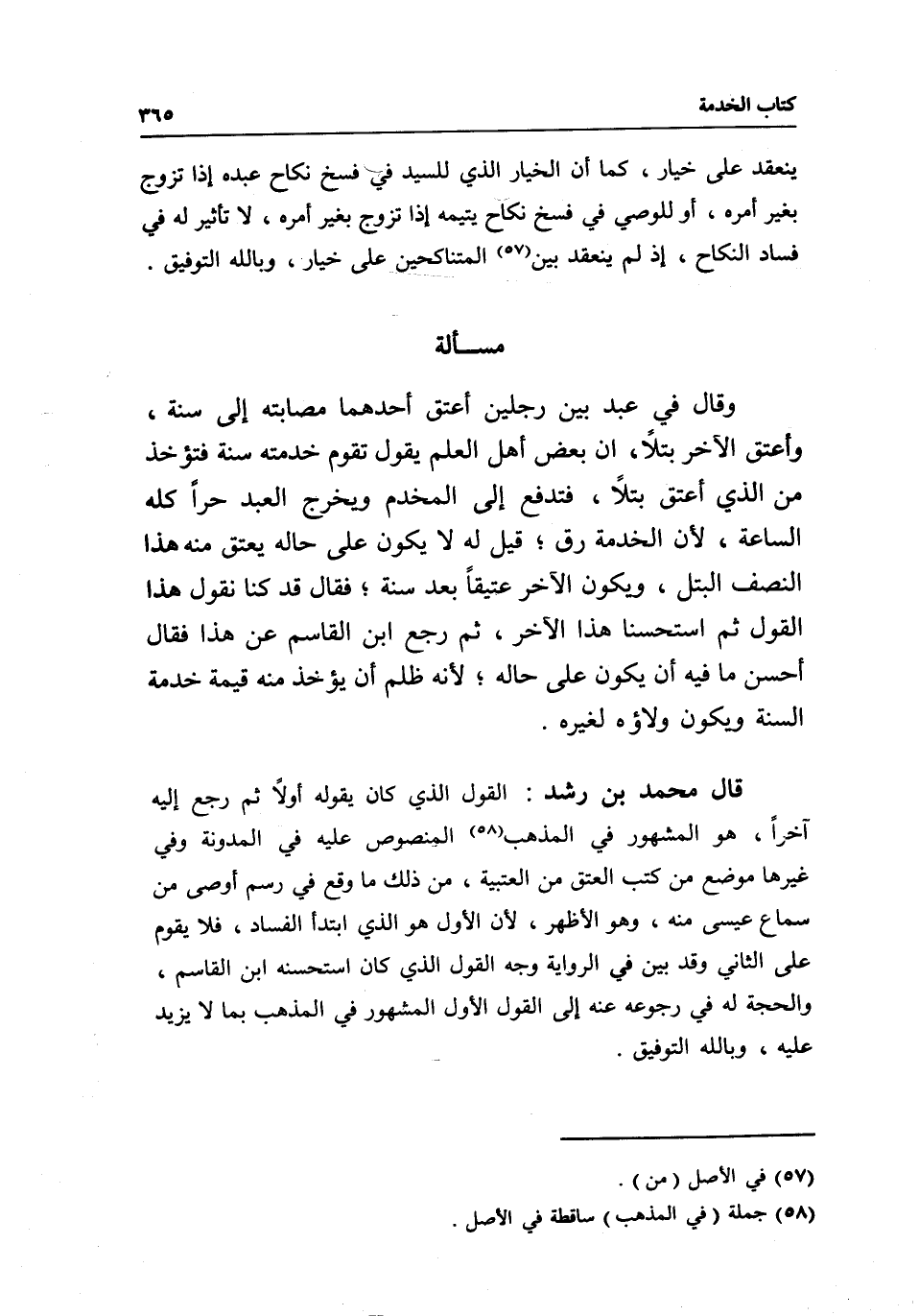 قال محمد بن رشد: القول الذي كان يقوله أولا ثم رجع إليه آخرا، هو المشهور في المذهب المنصوص عليه في المدونة وفي غيرها موضع من كتب العتق من العتبية، من ذلك ما وقع في رسم أوصى من سماع عيسى منه، وهو الأظهر، لأن الأول هو الذي ابتدأ الفساد، فلا يقوم على الثاني وقد بين في الرواية وجه القول الذي كان استحسنه ابن القاسم، والحجة له في رجوعه عنه إلى القول الأول المشهور في المذهب بما لا يزيد عليه، وبالله التوفيق.