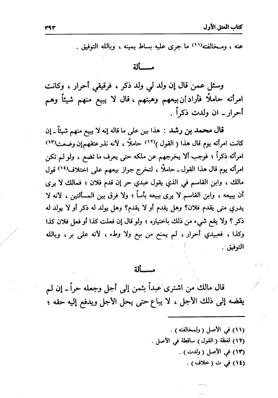 مسألة وسئل: عمن قال: إن ولد لي ولد ذكر، فرقيقي أحرار، وكانت امرأته حاملا فأراد أن بيعهم وهبتهم، قال: لا يبيع منهم شيئا وهم أحرار- إن ولدت ذكرا.