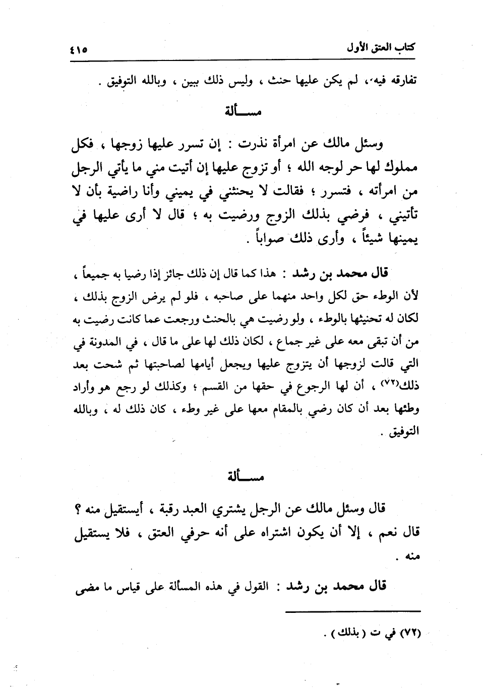 قال محمد بن رشد: القول في هذه المسألة على قياس ما مضى