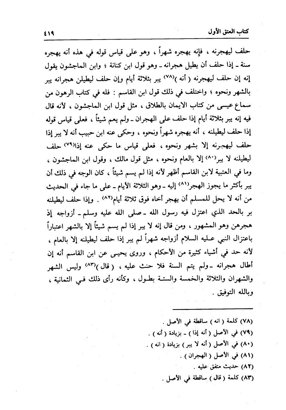 حلف ليهجرنه، فإنه يهجره شهرا، وهو على قياس قوله في هذه: أنه يهجره سنة- إذا حلف أن يطيل هجرانه- وهو قول ابن كنانة، وابن الماجشون يقول: إنه إن حلف ليهجرنه (أنه) يبر بثلاثة أيام، وإن حلف ليطيلن هجرانه يبر بالشهر ونحوه، واختلف في ذلك قول ابن القاسم فله في كتاب الرهون من سماع عيسى من كتاب الأيمان بالطلاق، مثل قول ابن الماجشون؛ لأنه قال فيه: إنه يبر بثلاثة أيام إذا حلف على الهجران- ولم يعم شيئا، فعلى قياس قوله إذا حلف ليطيلنه، أنه يهجره شهرا ونحوه، وحكى عنه ابن حبيب أنه لا يبر إذا حلف ليهجرنه إلا بشهر ونحوه، فعلى قياس ما حكى عنه إذا حلف ليطيلنه لا يبر إلا بالعام ونحوه، مثل قول مالك، وقول ابن الماجشون، وما في العتبية لابن القاسم أظهر؛ لأنه إذا لم يسم شيئا، كان الوجه في ذلك أن يبر بأكثر ما يجوز الهجر إليه- وهو الثلاثة الأيام- على ما جاء في الحديث من أنه لا يحل للمسلم أن يهجر أخاه فوق ثلاثة أيام.
