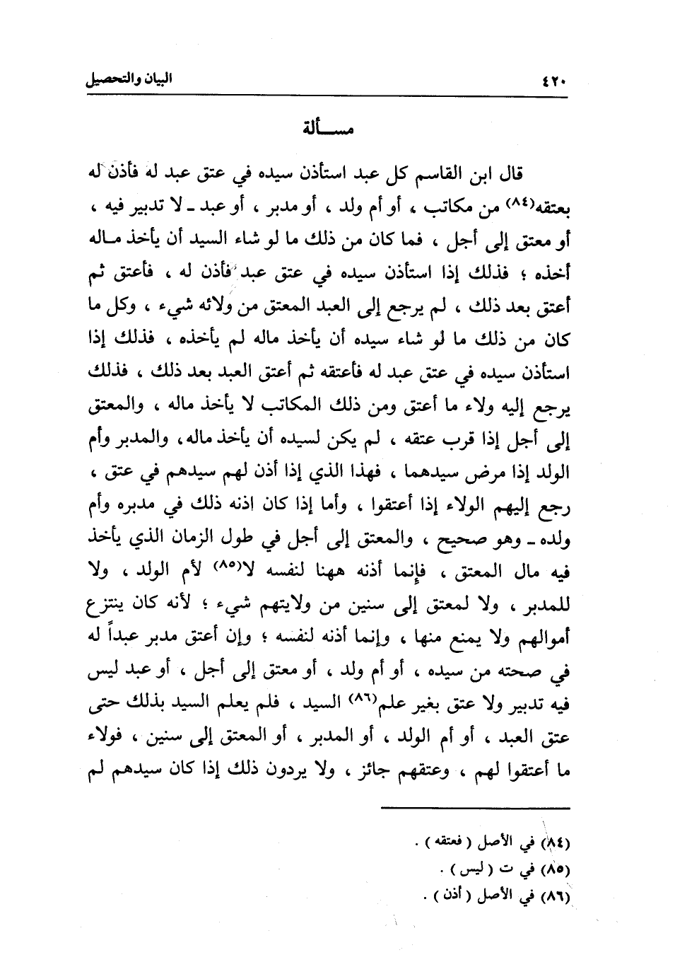 مسألة قال ابن القاسم: كل عبد استأذن سيده في عتق عبد له فأذن له بعتقه من مكاتب، أو أم ولد، أو مدبر، أو عبد- لا تدبير فيه، أو معتق إلى أجل، فما كان من ذلك ما لو شاء السيد أن يأخذ ماله أخذه، فذلك إذا استأذن سيده في عتق عبد فأذن له، فأعتق ثم أعتق بعد ذلك، لم يرجع إلى العبد المعتق من ولائه شيء، وكل ما كان من ذلك ما لو شاء سيده أن يأخذ ماله لم يأخذه، فذلك إذا استأذن سيده في عتق عبد له فأعتقه ثم أعتق العبد بعد ذلك، فذلك يرجع إليه ولاء ما أعتق ومن ذلك المكاتب لا يأخذ ماله، والمعتق إلى أجل إذا قرب عتقه، لم يكن لسيده أن يأخذ ماله، والمدبر وأم الولد إذا مرض سيدهما، فهذا الذي إذا أذن لهم سيدهم في عتق، رجع إليهم الولاء إذا أعتقوا، وأما إذا كان إذنه ذلك في مدبره وأم ولده- وهو صحيح، والمعتق إلى أجل في طول الزمان الذي يأخذ فيه مال المعتق، فإنما أذنه ههنا لنفسه لا لأم الولد، ولا للمدبر، ولا لمعتق إلى سنين من ولايتهم شيء؛ لأنه كان ينتزع أموالهم ولا يمنع منها، وإنما أذنه لنفسه، وإن أعتق مدبر عبدا له في صحته من سيده، أو أم ولد، أو معتق إلى أجل، أو عبد ليس فيه تدبير ولا عتق بغير علم السيد، فلم يعلم السيد بذلك حتى عتق العبد، أو أم الولد، أو المدبر، أو المعتق إلى سنين، فولاء ما أعتقوا لهم، وعتقهم جائز، ولا يردون ذلك إذا كان سيدهم لم