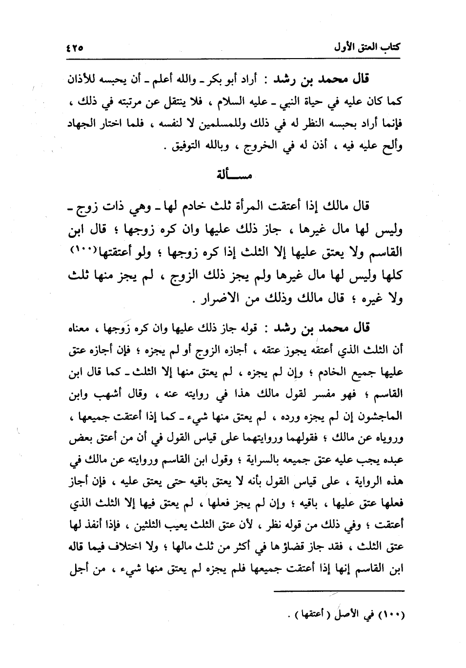 مسألة قال مالك: إذا أعتقت المرأة ثلث خادم لها- وهي ذات زوج- وليس لها مال غيرها، جاز ذلك عليها، وإن كره زوجها؟ قال ابن القاسم: ولا يعتق عليها إلا الثلث إذا كره زوجها، ولو أعتقتها كلها وليس لها مال غيرها ولم يجز ذلك الزوج، لم يجز منها ثلث ولا غيره، قال مالك: وذلك من الأضرار.