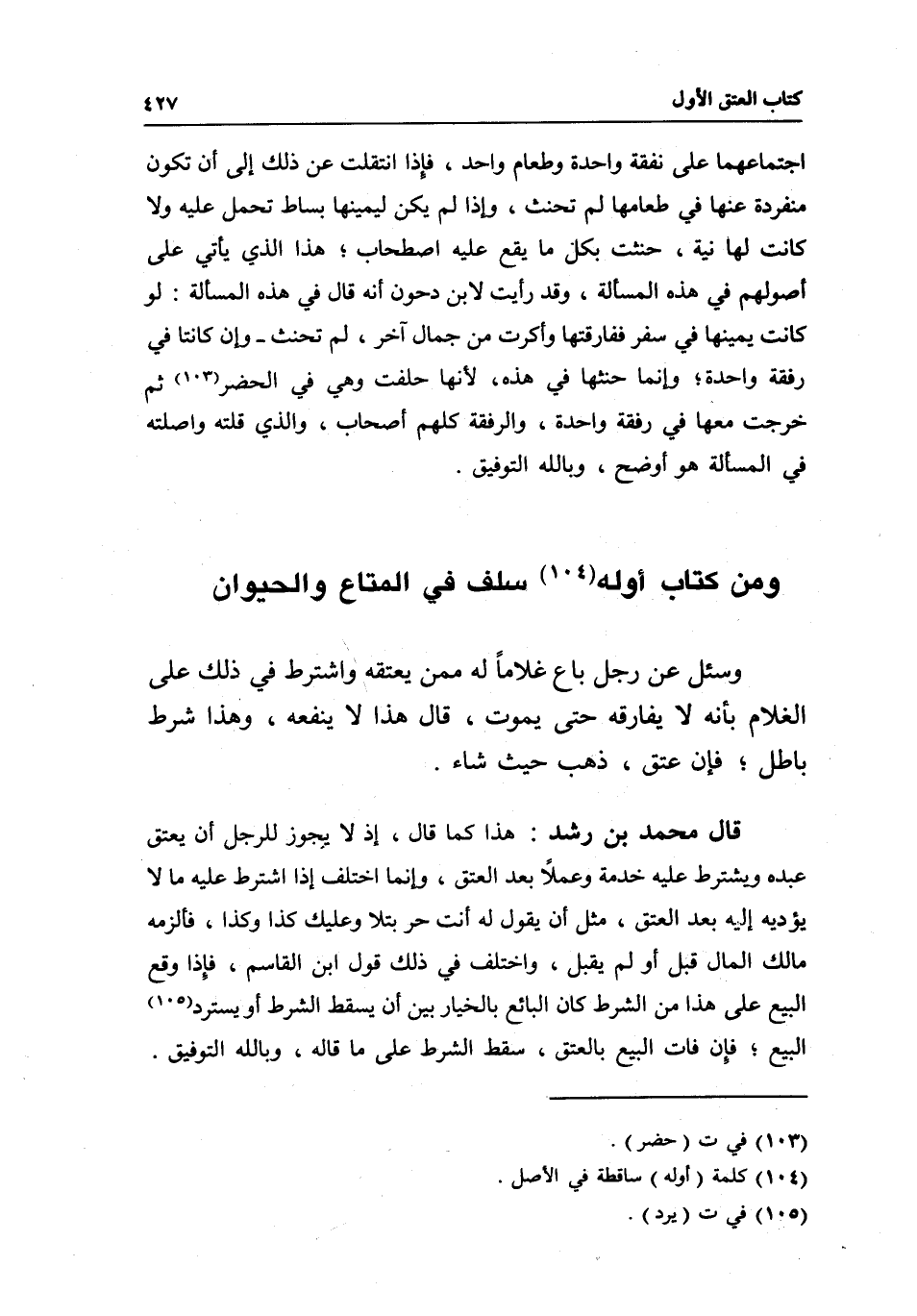 ومن كتاب أوله سلف في المتاع والحيوان وسئل: عن رجل باع غلاما له ممن يعتقه واشترط في ذلك على الغلام بأنه لا يفارقه حتى يموت، قال: هذا لا ينفعه، وهذا شرط باطل، فإن عتق، ذهب حيث شاء.