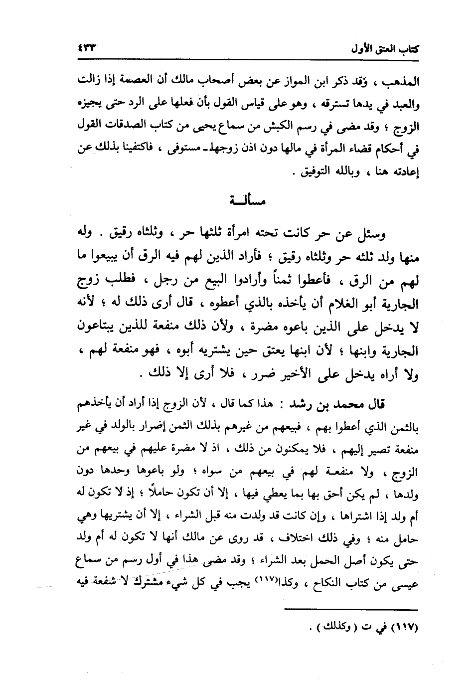 مسألة وسئل: عن حر كانت تحته امرأة ثلثها حر، وثلثاه رقيق، وله منها ولد ثلثه حر وثلثاه رقيق، فأراد الذين لهم فيه الرق أن يبيعوا ما لهم من الرق، فأعطوا ثمنا وأرادوا البيع من رجل، فطلب زوج الجارية أبو الغلام أن يأخذه بالذي أعطوه، قال: أرى ذلك له؛ لأنه لا يدخل على الذين باعوه مضرة؛ ولأن ذلك منفعة للذين يبتاعون الجارية وابنها؛ لأن ابنها يعتق حين يشتريه أبوه، فهو منفعة لهم، ولا أراه يدخل على الأخير ضرر، فلا أرى إلا ذلك.