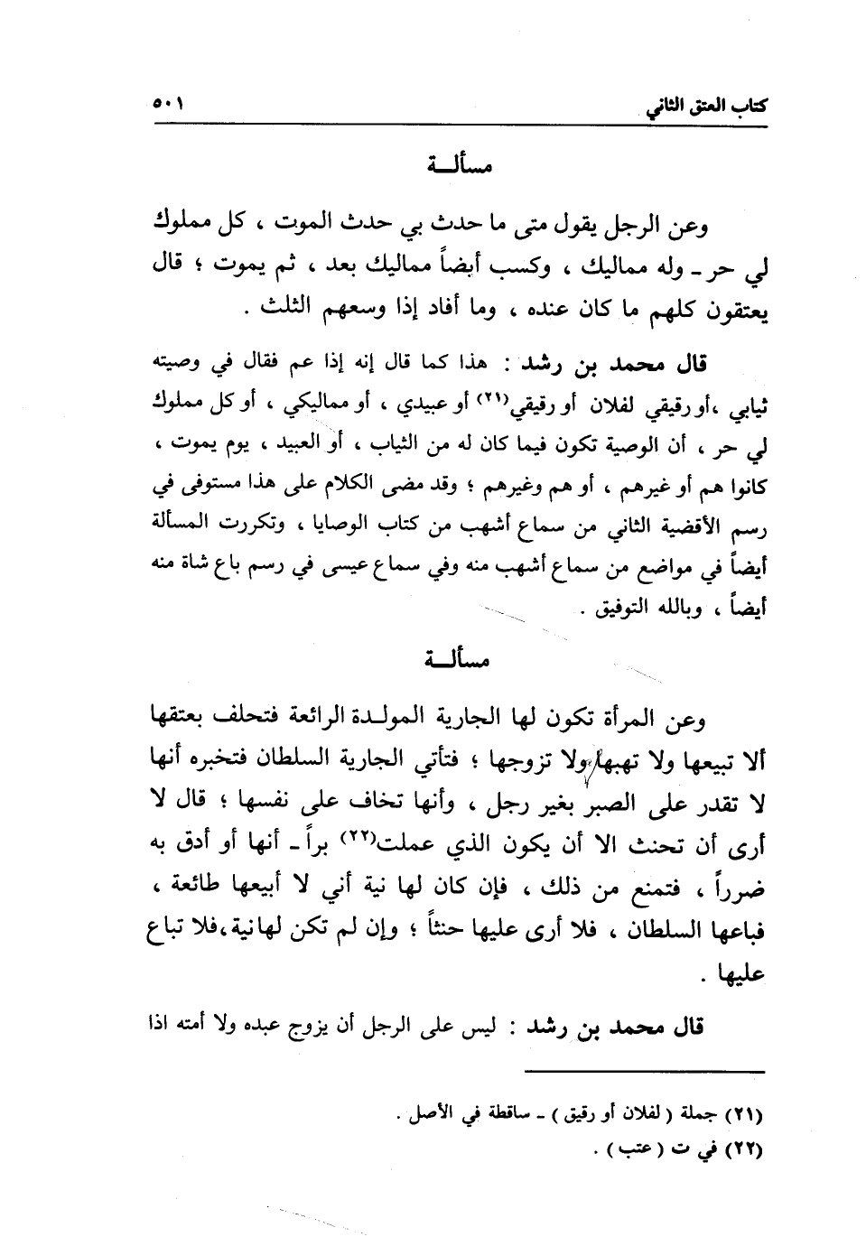[مسألة: يقول متى ما حدث بي حدث الموت كل مملوك لي حر]