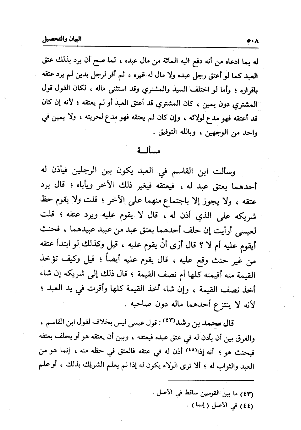 قال محمد بن رشد: قول عيسى ليس بخلاف لقول ابن القاسم، والفرق بين أن يأذن له في عتق عبده فيعتقه، وبين أن يعتقه هو أو يحلف بعتقه فيحنث هو، أنه إذا أذن له في عتقه فالعتق في حظه منه، إنما هو من العبد والثواب له، ألا ترى الولاء يكون له إذا لم يعلم الشريك بذلك، أو علم