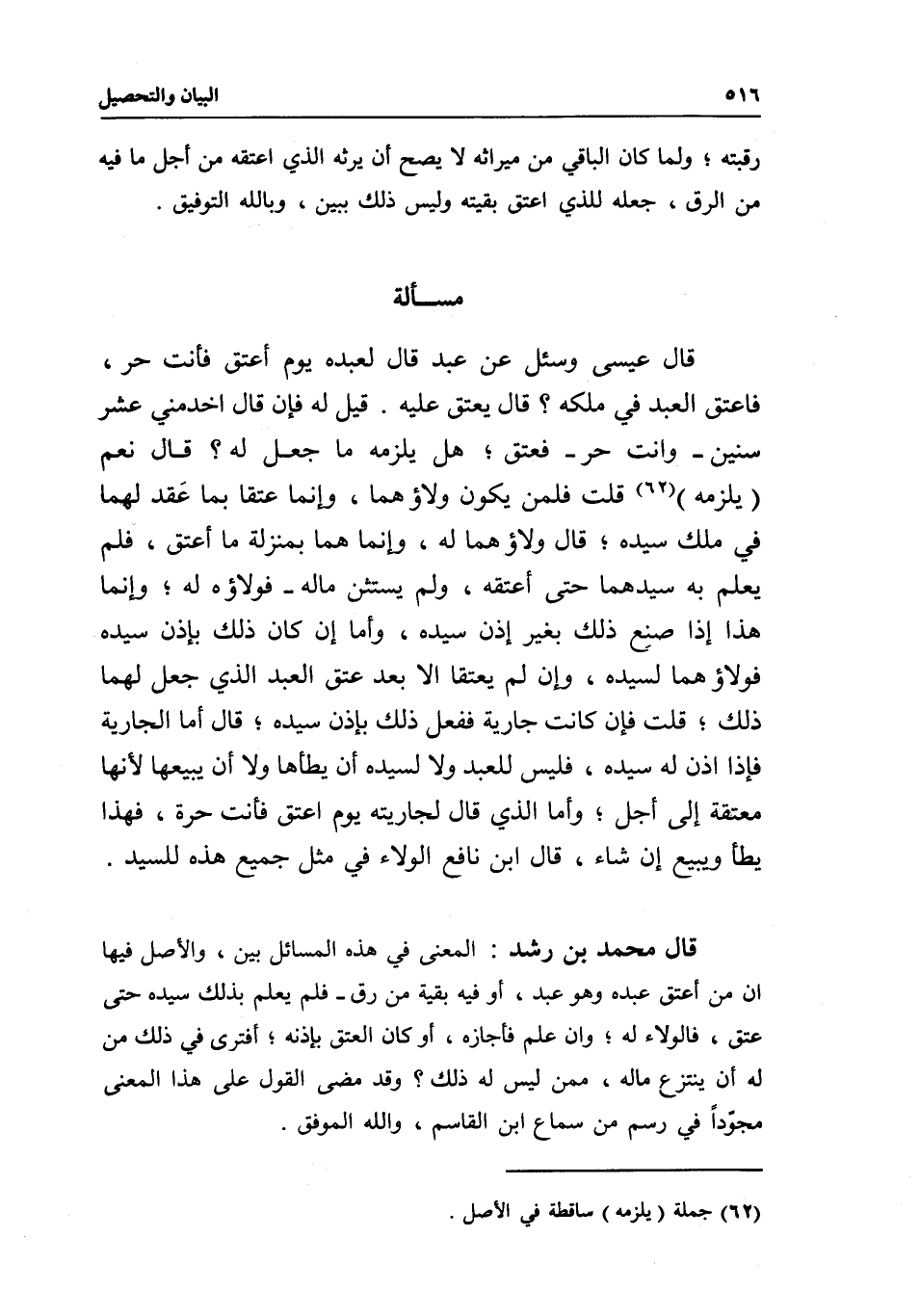 قال محمد بن رشد: المعنى في هذه المسائل بين، والأصل فيها أن من أعتق عبده وهو عبد، أو فيه بقية من رق، فلم يعلم بذلك سيده حتى عتق، فالولاء له؛ وإن علم فأجازه، أو كان العتق بإذنه؛ أفترى في ذلك من له أن ينتزع ماله، ممن ليس له ذلك؟ وقد مضى القول على هذا المعنى مجودا في رسم من سماع ابن القاسم، والله الموفق.