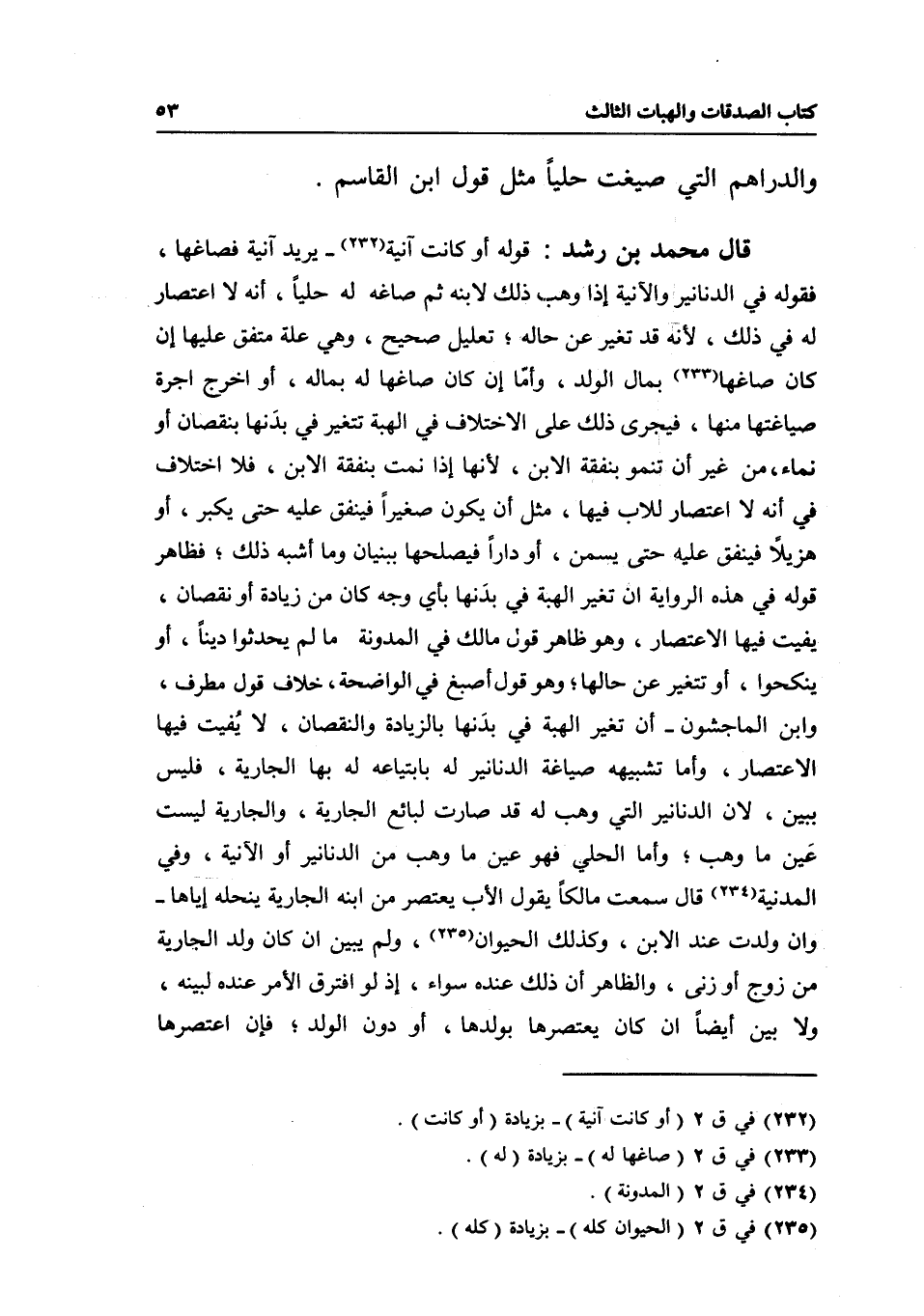 والدراهم التي صيغت حليا، مثل قول ابن القاسم.