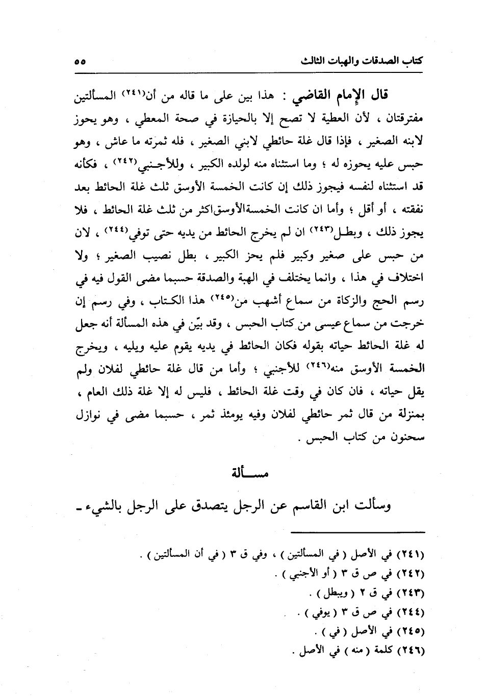 مسألة وسألت ابن القاسم عن الرجل يتصدق على الرجل بالشيء،