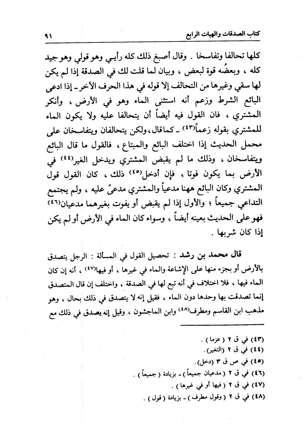 قال محمد بن رشد: تحصيل القول في المسألة: الرجل يتصدق بالأرض أو بجزء منها على الإشاعة والماء في غيرها، أو فيها، أنه إن كان الماء فيها، فلا اختلاف في أنه تبع لها في الصدقة، واختلف إن قال المتصدق: إنما تصدقت بها وحدها دون الماء، فقيل: إنه لا يتصدق في ذلك بحال، وهو مذهب ابن القاسم ومطرف، وابن الماجشون، وقيل: إنه يصدق في ذلك مع