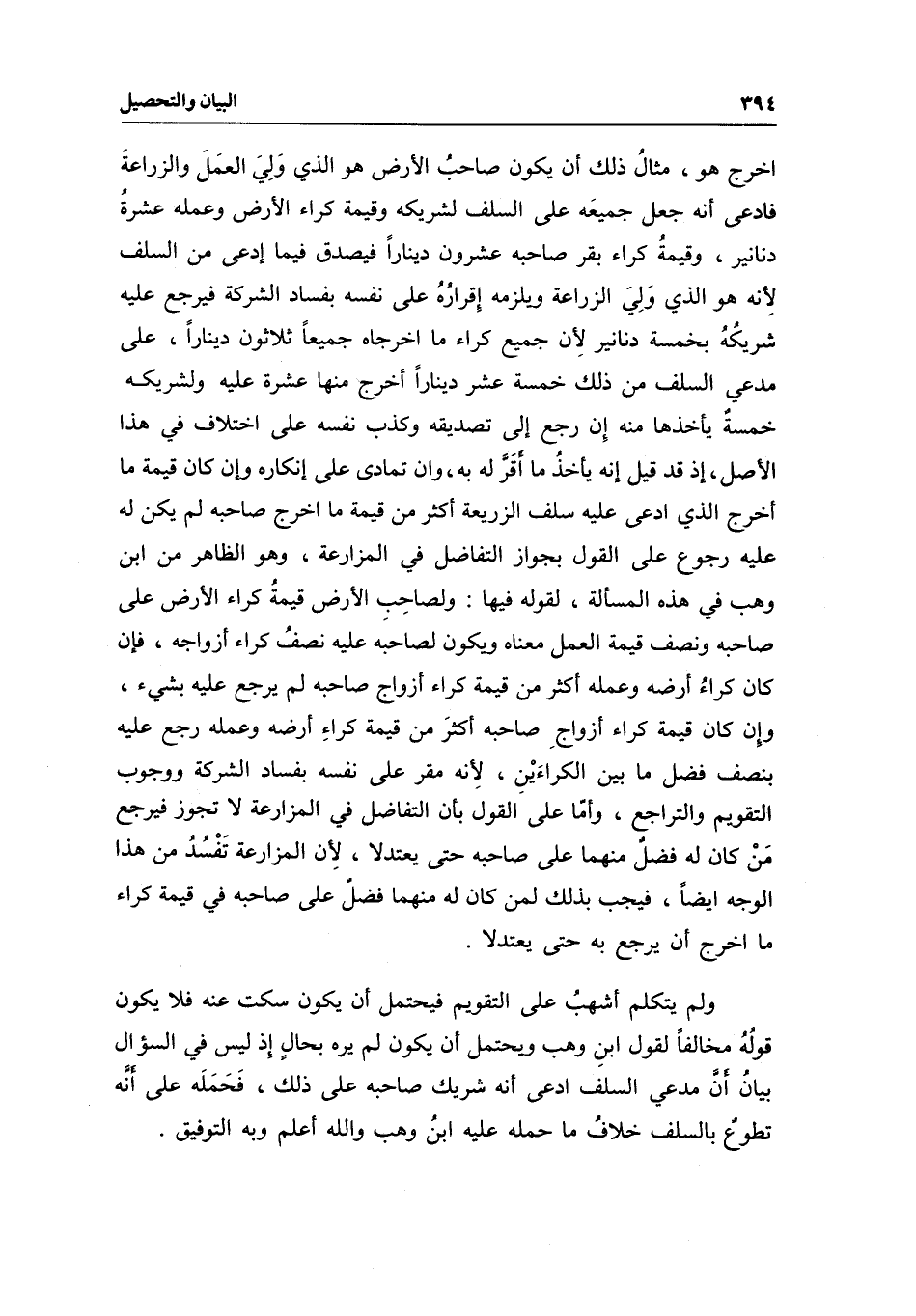 ولم يتكلم أشهب على التقويم فيحتمل أن يكون سكت عنه فلا يكون قوله مخالفا لقول ابن وهب، ويحتمل أن يكون لم يره بحال إذ ليس في السؤال بيان أن مدعي السلف ادعى أنه شريك صاحبه على ذلك، فحمله على أنه تطوع بالسلف خلاف ما حمله عليه ابن وهب والله أعلم وبه التوفيق.
