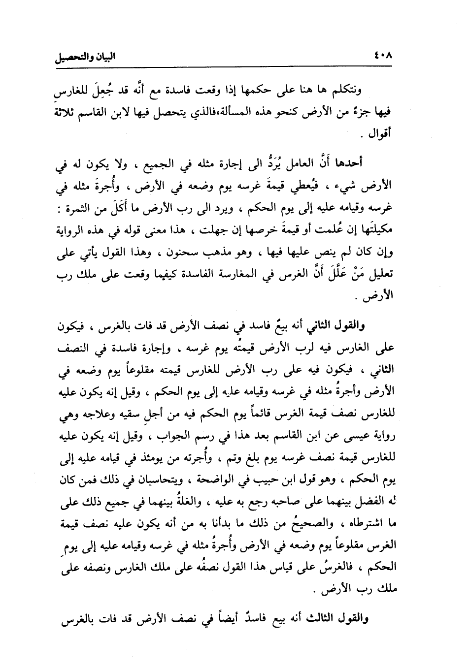 ونتكلم هاهنا على حكمها إذا وقعت فاسدة مع أنه قد جعل للغارس فيها جزء من الأرض كنحو هذه المسألة، فالذي يتحصل فيها لابن القاسم ثلاثة أقوال.