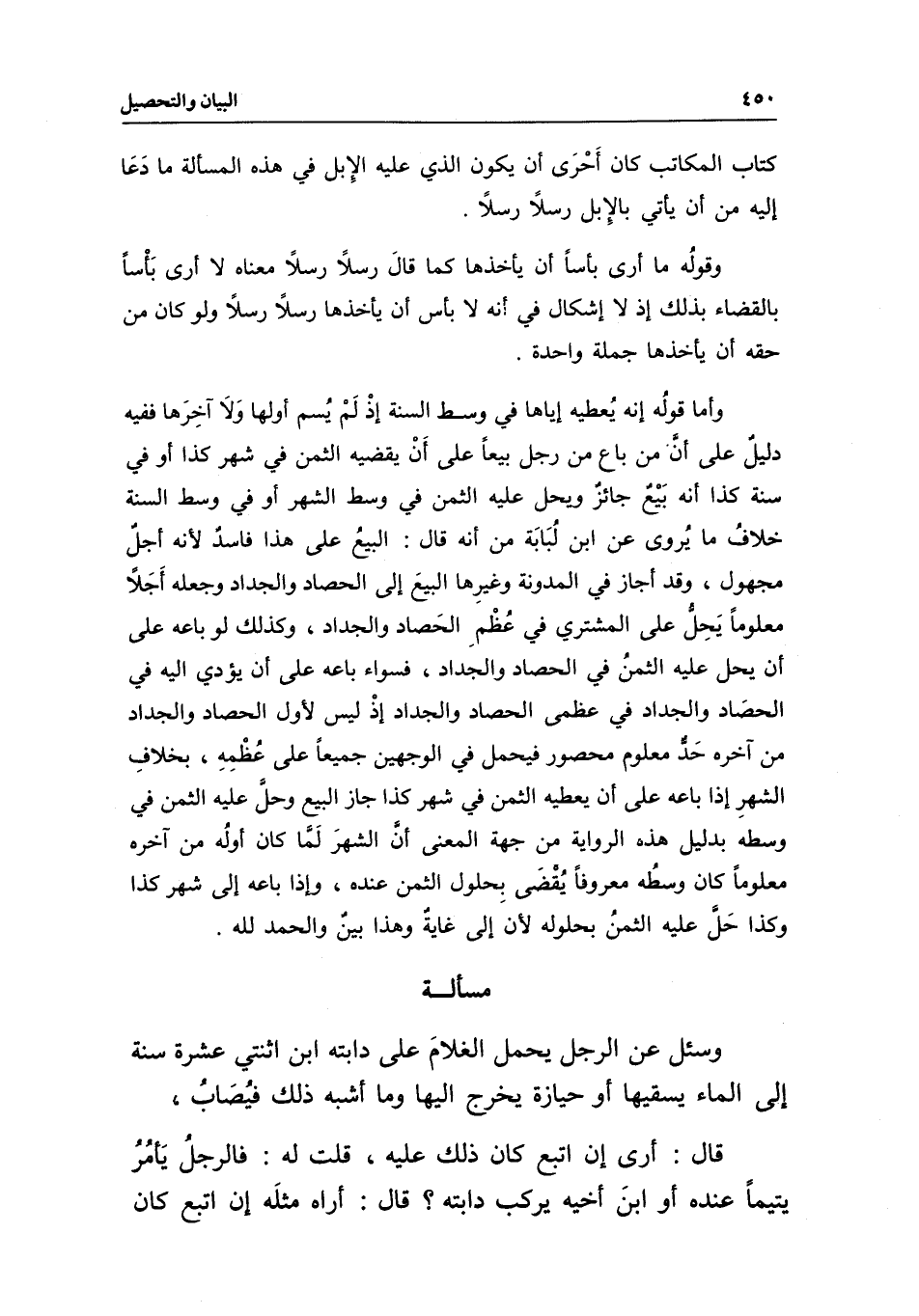 كتاب المكاتب كان أحرى أن يكون الذي عليه الإبل في هذه المسألة ما دعا إليه من أن يأتي بالإبل رسلا رسلا.