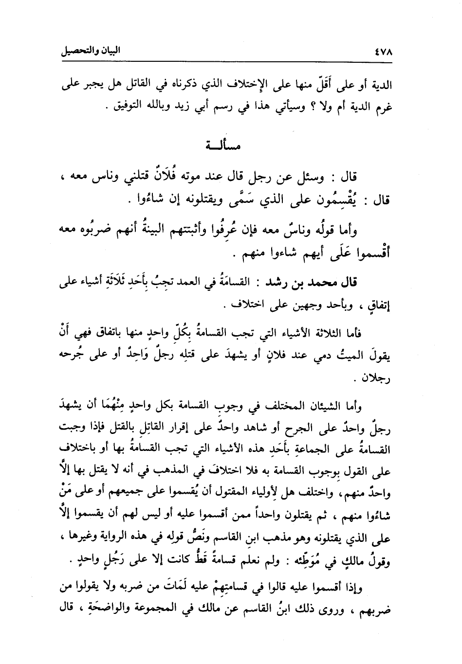 قال محمد بن رشد: القسامة في العمد تجب بأحد ثلاثة أشياء على اتفاق، وبأحد وجهين على اختلاف.