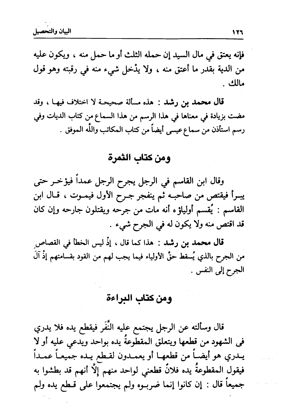 قال محمد بن رشد: هذه مسألة صحيحة لا اختلاف فيها، وقد مضت بزيادة في معناها في هذا الرسم من هذا السماع من كتاب الديات وفي رسم استأذن من سماع عيسى أيضا من كتاب المكاتب والله الموفق.