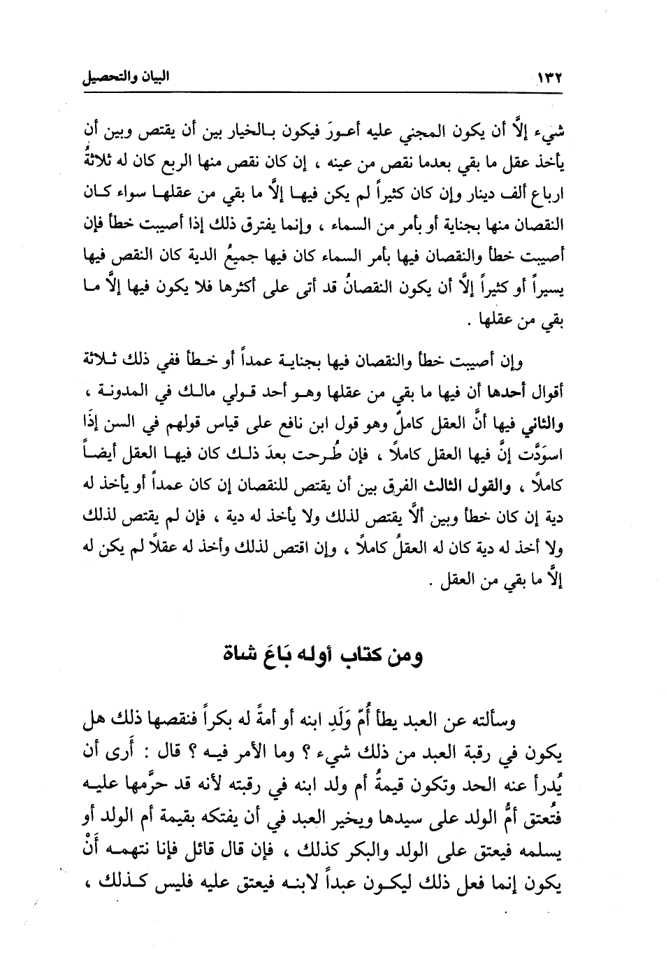 ومن كتاب أوله باع شاة وسألته عن العبد يطأ أم ولد ابنه أو أمة له بكرا فنقصها ذلك هل يكون في رقبة العبد من ذلك شيء؟ وما الأمر فيه؟ قال: أرى أن يدرأ عنه الحد وتكون قيمة أم ولد ابنه في رقبته لأنه قد حرمها عليه فتعتق أم الولد على سيدها ويخير العبد في أن يفتكه بقيمة أم الولد أو يسلمه فيعتق على الولد والبكر كذلك، فإن قال قائل فإنا نتهمه أن يكون إنما فعل ذلك ليكون عبدا لابنه فيعتق عليه فليس كذلك،