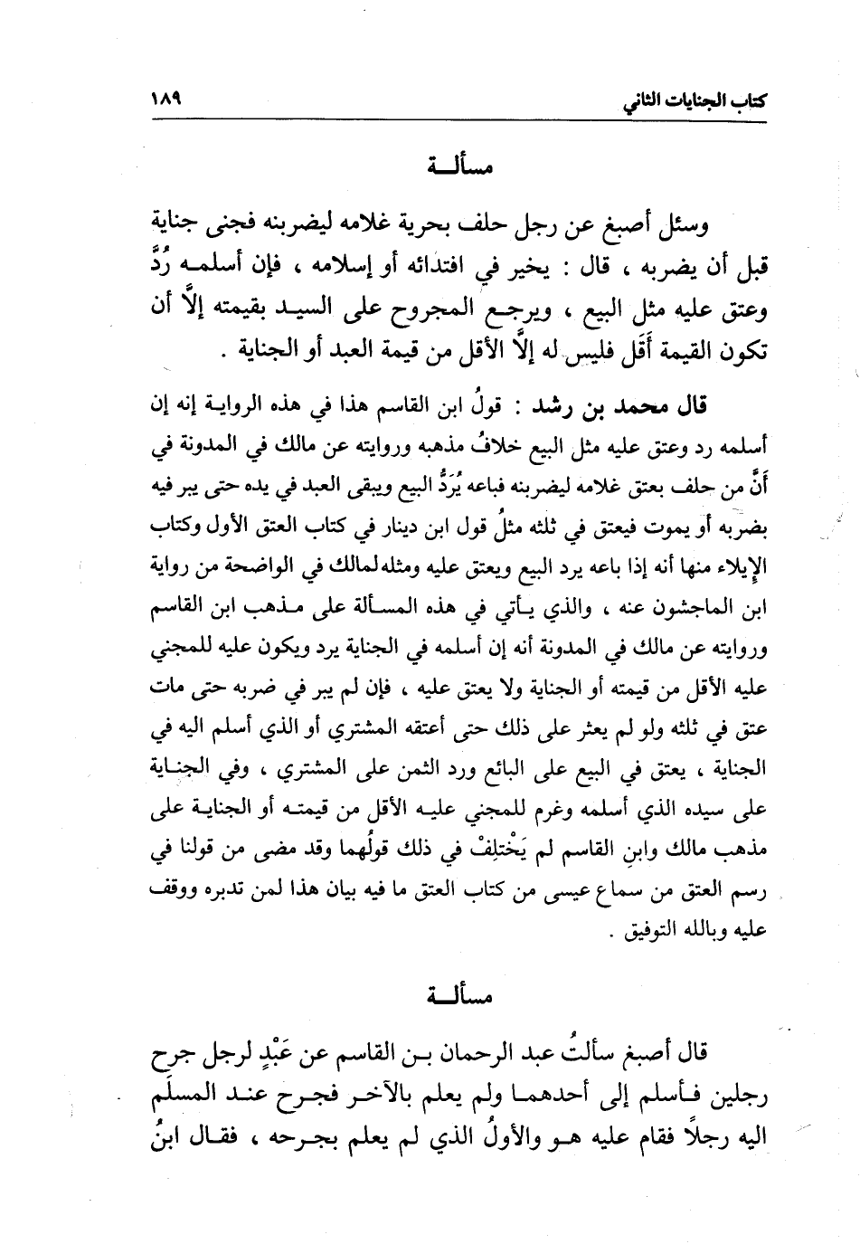 مسألة قال أصبغ سألت عبد الرحمن بن القاسم عن عبد لرجل جرح رجلين فأسلم إلى أحدهما ولم يعلم بالآخر فجرح عند المسلم إليه رجلا فقام عليه هو والأول الذي لم يعلم بجرحه، فقال ابن