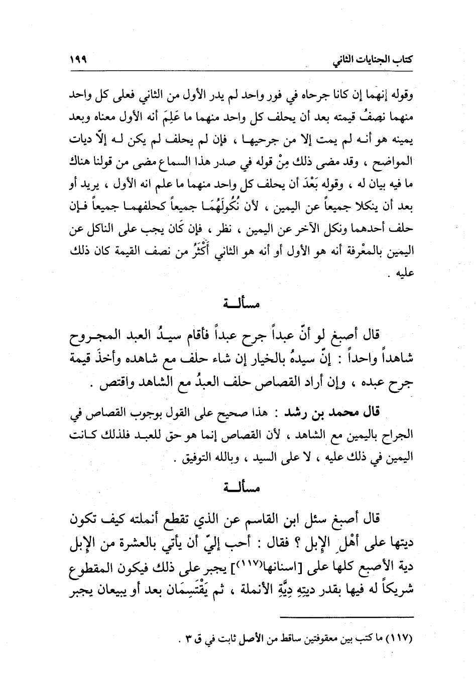 قال محمد بن رشد: هذا صحيح على القول بوجوب القصاص في الجراح باليمين مع الشاهد؛ لأن القصاص إنما هو حق للعبد فلذلك كانت اليمين في ذلك عليه، لا على السيد، وبالله التوفيق.