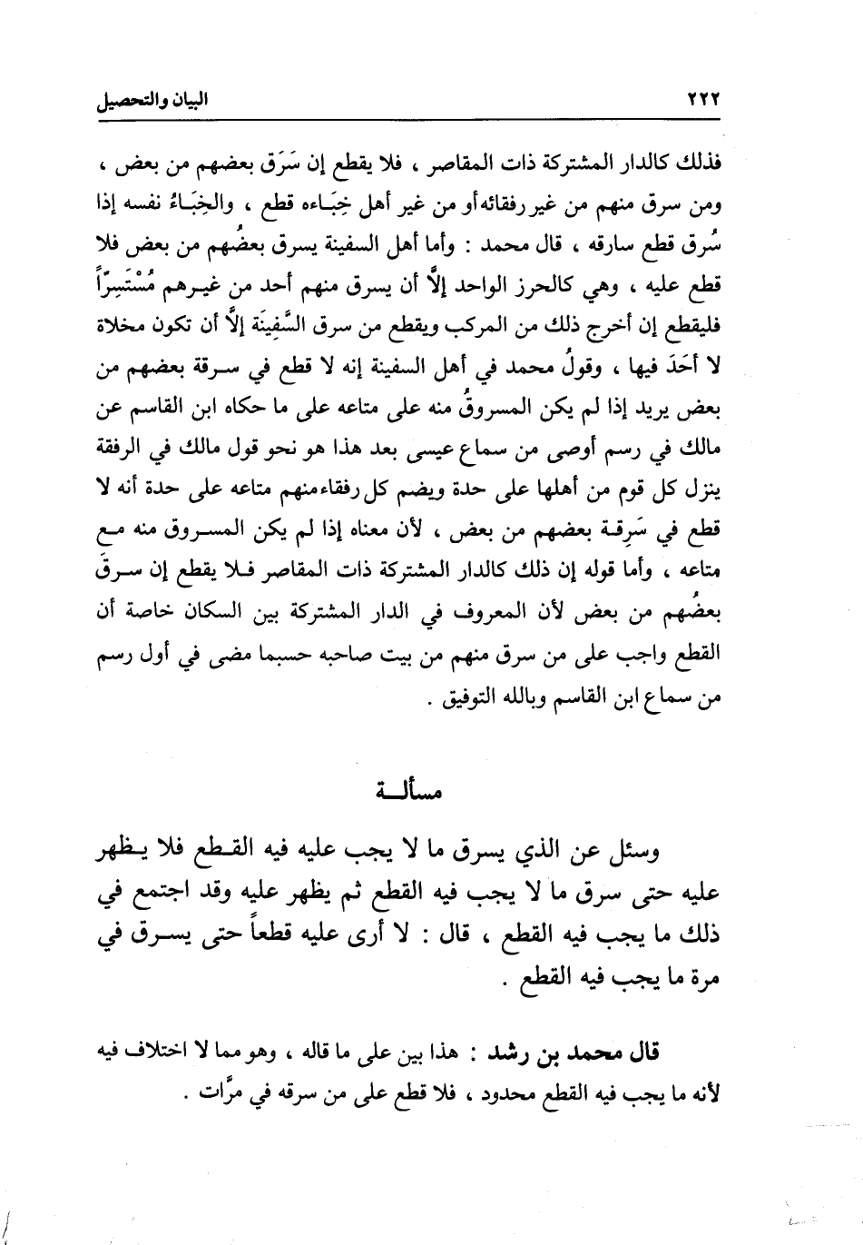 قال محمد بن رشد: هذا بين على ما قاله، وهو مما لا اختلاف فيه لأنه ما يجب فيه القطع محدود، فلا قطع على من سرقه في مرات.