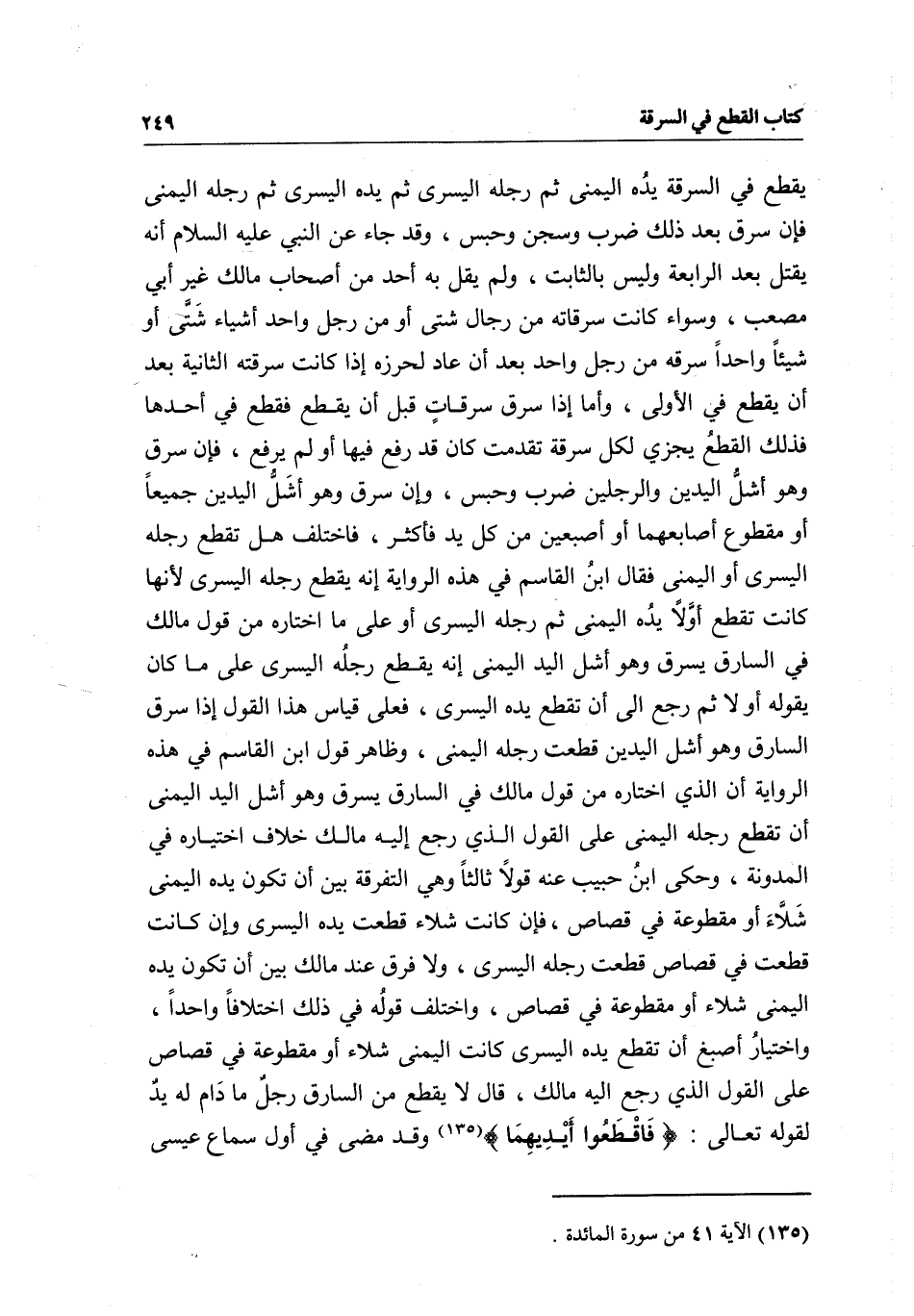 يقطع في السرقة يده اليمنى ثم رجله اليسرى ثم يده اليسرى ثم رجله اليمنى فإن سرق بعد ذلك ضرب وسجن وحبس، وقد جاء عن النبي - عَلَيْهِ السَّلَامُ - أنه يقتل بعد الرابعة وليس بالثابت، ولم يقل به أحد من أصحاب مالك غير أبي مصعب، وسواء كانت سرقاته من رجال شتى أو من رجل واحد أشياء شتى أو شيئا واحدا سرقه من رجل واحد بعد أن عاد لحرزه إذا كانت سرقته الثانية بعد أن يقطع في الأولى، وأما إذا سرق سرقات قبل أن يقطع فقطع في أحدها فذلك القطع يجزي لكل سرقة تقدمت كان قد رفع فيها أو لم يرفع، فإن سرق وهو أشل اليدين والرجلين ضرب وحبس، وإن سرق وهو أشل اليدين جميعا أو مقطوع أصابعهما أو أصبعين من كل يد فأكثر، فاختلف هل تقطع رجله اليسرى أو اليمنى فقال ابن القاسم في هذه الرواية إنه يقطع رجله اليسرى لأنها كانت تقطع أولا يده اليمنى ثم رجله اليسرى أو على ما اختاره من قول مالك في السارق يسرق وهو أشل اليد اليمنى إنه يقطع رجله اليسرى على ما كان يقوله أولا ثم رجع إلى أن تقطع يده اليسرى، فعلى قياس هذا القول إذا سرق السارق وهو أشل اليدين قطعت رجله اليمنى، وظاهر قول ابن القاسم في هذه الرواية أن الذي اختاره من قول مالك في السارق يسرق وهو أشل اليد اليمنى أن تقطع رجله اليمنى على القول الذي رجع إليه مالك خلاف اختياره في المدونة، وحكى ابن حبيب عنه قولا ثالثا وهي التفرقة بين أن تكون يده اليمنى شلاء أو مقطوعة في قصاص، فإن كانت شلاء قطعت يده اليسرى وإن كانت قطعت في قصاص قطعت رجله اليسرى، ولا فرق عند مالك بين أن تكون يده اليمنى شلاء أو مقطوعة في قصاص، واختلف قوله في ذلك اختلافا واحدا، واختيار أصبغ أن تقطع يده اليسرى كانت اليمنى شلاء أو مقطوعة في قصاص على القول الذي رجع إليه مالك، قال لا يقطع من السارق رجل ما دام له يد لِقَوْلِهِ تَعَالَى: {فَاقْطَعُوا أَيْدِيَهُمَا} [المائدة: 38] وقد مضى في أول سماع عيسى